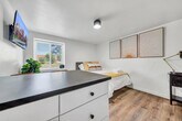 The advertised rate of $1,980/month is the lowest available price, based on a 1 month(s) stay with a move-in date of June 1, 2026. Rates vary depending on the duration of stay, season, and other parameters. For exact pricing and additional pricing components, please visit our website and enter your desired move-in and move-out dates. The rate is applicable when billed upfront; it can be higher if billed in multiple payments. Feel at home in this studio apartment located on the first floor of a newly renovated building in the Lower West Side neighborhood, adjacent to Allentown and Elmwood Village. This apartment features an updated, fully stocked kitchen with a full-size fridge, electric stove/oven, microwave, coffee maker, and basic cooking necessities. Enjoy blazing fast Wi-Fi and a 43-inch Roku Smart TV with Netflix. The apartment also includes a clean, private bathroom with a bathtub. A washer and dryer are available in the building. This apartment is within walking distance of D’Youville College and local parks, as well as a short driving distance to the Downtown Buffalo Medical Campus. The recently renovated property is less than a mile from I-190 and the Peace Bridge, providing easy access to Downtown Buffalo, Grand Island, Fort Erie, and beyond. It is also located just an 8-minute drive from Buffalo General Hospital, Oishei Children's Hospital, Roswell Park Hospital, and UB Jacobs Medical campus, and just a 10-minute walk from D'Youville College. The trusted partner is working with The Peace Bridge Place apartment community to provide this full-service furnished accommodation for those who need somewhere to call home for 1 month or more. [SI]