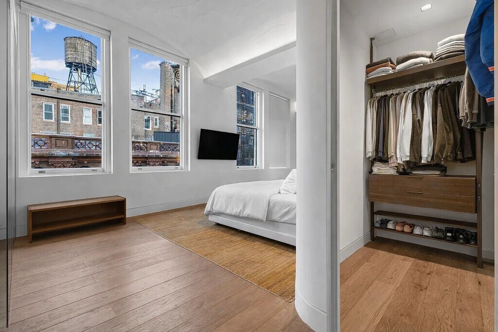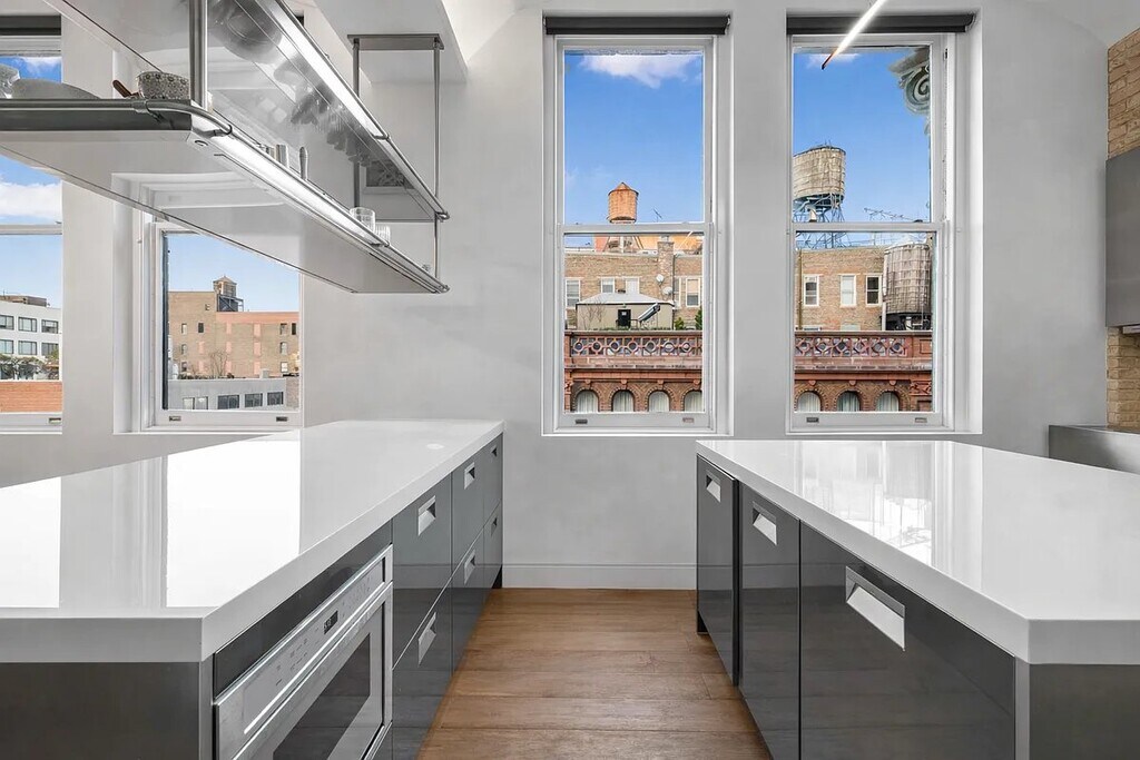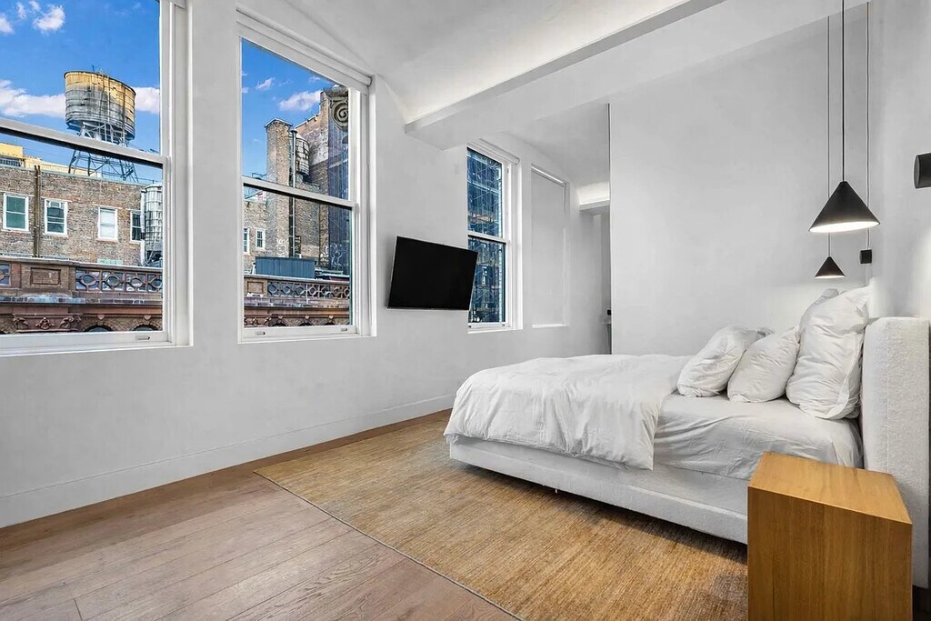 Welcome to 640 Broadway!This exceptional three-bedroom, two-and-a-half-bathroom penthouse loft seamlessly blends bespoke luxury finishes with striking original architectural details, creating a truly one-of-a-kind residence in the heart of prime NoHo.Accessed via a private, keyed elevator, the home opens into a dramatic foyer accented by dark glass and exposed brick. The grand scale of the penthouse is immediately apparent, highlighted by 12-foot barrel-vaulted ceilings illuminated with custom LED soffit lighting that casts a warm, architectural glow throughout. Nineteen oversized windows line the residence, filling the space with abundant natural light and open-sky views, while heated Italian oak hardwood floors add both elegance and comfort.The expansive corner great room, with northern and western exposures, is ideal for entertaining. At its center is a stunning chefs kitchen featuring dual islands with striking Glassos countertops, a breakfast bar, and generous prep space. The kitchen is outfitted with top-of-the-line Gaggenau appliances, including an induction cooktop and built-in espresso machine, complemented by Boffi fixtures and custom ARCLINEA cabinetry.The primary suite offers a serene retreat, complete with an all-glass Rimadesio custom wardrobe and a separate walk-in closet. The open en-suite bathroom is spa-like in design, featuring radiant-heated slate floors, walnut-finished Boffi vanities, ample built-in storage, and a dramatic 65-inch stone soaking tub. Two additional bedrooms include custom built-in closets and are serviced by a second full bathroom with a glass-enclosed shower and custom double vanity.State-of-the-art technology is thoughtfully integrated throughout the home, including custom lighting by FLOS and Boffi, CAT 6 pre-wiring for audio and video in every room, and automated window shades, all controlled via a Lutron smart home system with multiple programmable settings. Central air conditioning is enhanced by a Pure Air high-efficiency particulate air filtration system. A dedicated laundry room features a side-by-side washer and dryer with a deep utility sink for added convenience.Residents enjoy the convenience of a virtual doorman and access to the buildings newly renovated private fitness center, outfitted with Technogym equipment designed by Antonio Citterio, a Peloton bike, Kinesis Personal Vision, and a Sunlighten mPulse bELIEVE eucalyptus infrared sauna.Located at 640 Broadway, this nine-story landmarked building sits in the heart of the NoHo Historic District, one of Manhattans most coveted neighborhoods, celebrated for its world-class art galleries, boutique shopping, renowned dining, and vibrant nightlife.