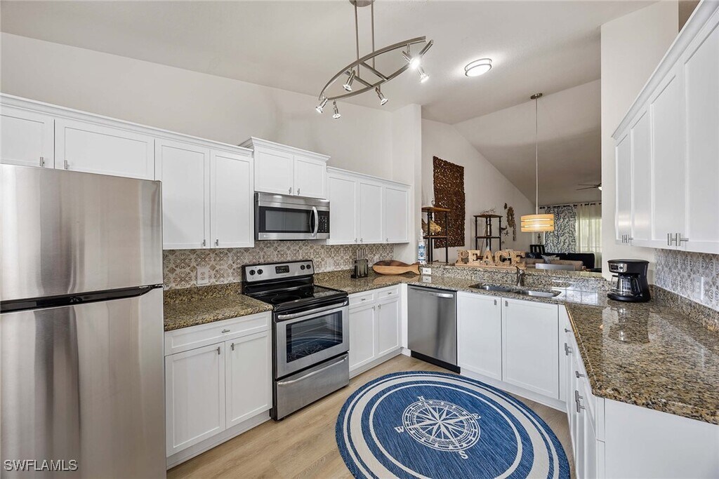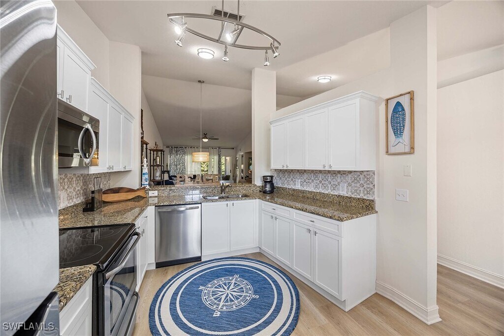 PEACEFUL VIEWS AND JUST STEPS TO THE COMMUNITY POOL!! This furnished 3 bedroom,2 bath end residence condo is the largest coach home model and it won't last long! This light and bright residence lives spaciously and features granite countertops,stainless appliances,tile and laminate flooring,tiled lanai and an electric hurricane shutter. Located in the active,social community of Sapphire Lakes,with activities galore,recreational enthusiasts delight with so much to do.....4 Pools,Bocce,Tennis,PickleBall,Horseshoes,social events and more! A short drive will take you to area beaches,shopping venues and dining options. Great location,low Fabulous community! You will love it here!