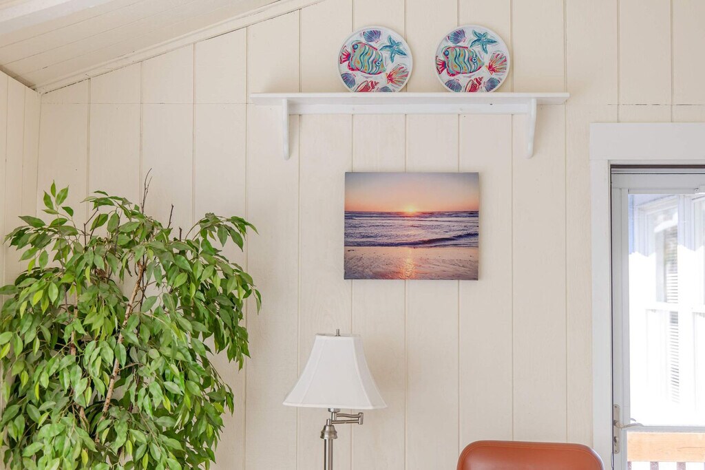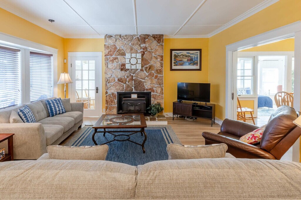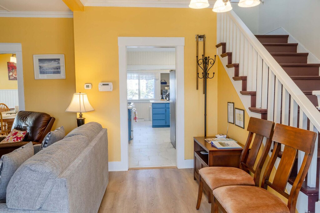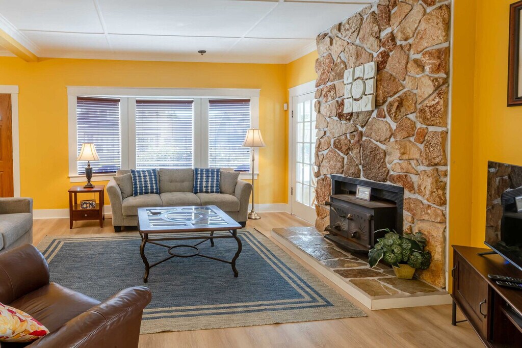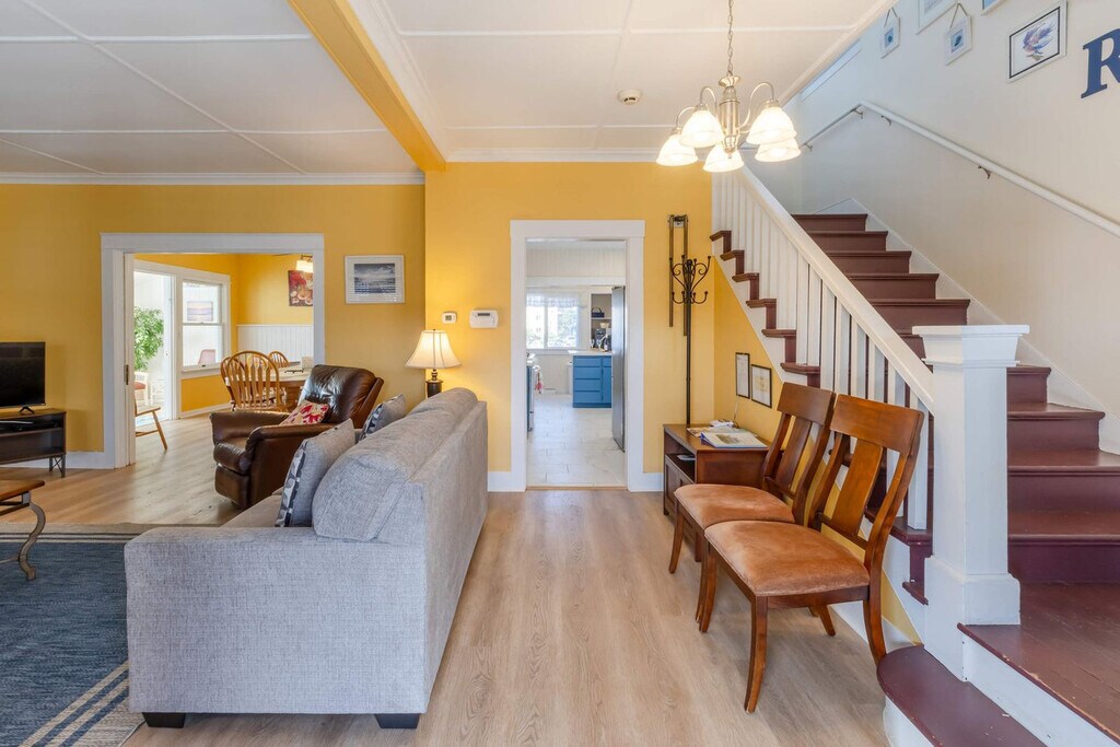 Feel at home in this spacious 5-bedroom, 3-bath home in Seaside, just two streets from the beach. This home sleeps 14 and blends vintage Seaside charm with lots of room to unwind. This beach house is full of character and vintage charm. The game room includes an air hockey table, foosball table, poker table complete with chips for up to 8 players, cozy couch, board games, puzzles, and cards. The fully equipped kitchen features a full-size fridge, oven, cooktop, microwave, toaster, air fryer, blender, slow cooker, Keurig, drip coffee maker, electric kettle, dishes, silverware, mugs, wine glasses, pots, pans, utensils, baking sheets, muffin tins, loaf pans, a spice cabinet, and cooking oils. Other amenities include a 55” Smart TV, a shared washer and dryer, complimentary unscented laundry pods, a Pack 'n Play with padded mattress and sheets, a baby bath, a changing table, a high chair, kid-friendly plastic dinnerware, shampoo, conditioner, body wash, hand soap, Q-tips, cotton pads, dental picks, plush towels and linens, beach towels, a hair dryer, and a first-aid kit. Step outside and have your toes in the sand within minutes, or rent a surrey and cruise the Seaside Prom. Walk to coffee shops, breakfast spots, restaurants, and local boutiques all just blocks away. The front porch is perfect for morning coffee, evening chats, or just people-watching. Gather around the backyard firepit with six chairs for s’mores, stories, or just some starry-night relaxation. Please respect quiet hours from 10 pm-8 am both inside and outside. Smoking inside the home is prohibited, and any smoking evidence will result in a fee for odor removal, duct cleaning, and furniture cleaning. Parties and events are not allowed. Includes a dedicated workspace desk and high-speed Wi-Fi. [SI]