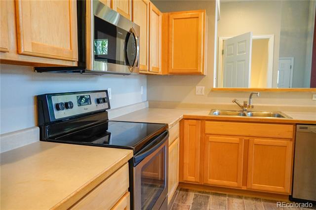 Home in a premier location in Lakewood***This one of a kind 3 bed 3 bath Townhome is just walking distance to Belmar's beautiful park of lakes and trails, the Belmar library, shopping and restaurants. Located just minutes from downtown and the mountains, this is a popular sought after area. You will love this Large beautiful end unit surrounded by mature landscape and trees with two separate patios! Fresh paint, new tile, and new carpet throughout. Open floor plan with vaulted ceilings and a double sided fireplace between the living and dining room makes for a very cozy space. Large main floor master bedroom with five piece bath and huge walk in closet. The additional main floor bedroom can be used as a guest room or study. Open kitchen with all stainless steel appliances and laundry located on the main floor. Beautiful open stairwell leads to the very oversized loft and an additional bedroom and bath. Nice sized unfinished basement with crawl space to consider finishing as you choose. There is tons of potential to this already amazing townhome in a very well kept neighborhood that allows for additional parking on the street. All reasonable offers considered. ** Rent to own is an option. Townhouse MLS# 7889452