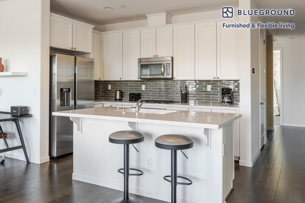 Discover the best of Redwood City, with this two bedroom townhouse in Redwood City. It’ll be easy to simply show up and start living in this modernly furnished townhouse with its fully equipped kitchen, stylish living room, and our dedicated, on-the-ground support. (ID #SFO1936) The advertised rate of $4,950/month is the lowest available price, based on a 11 month(s) and 29 day(s) stay with a move-in date of February 1, 2026. Rates vary depending on the duration of stay, season, and other parameters. For exact pricing and additional pricing components, please visit our website and enter your desired move-in and move-out dates. The rate is applicable when billed upfront; it can be higher if billed in multiple payments. Brokers are welcome to reach out. Were you looking for an unfurnished lease? Try Blueground instead and upgrade from unfurnished to furnished living: - Furnished at rates comparable to unfurnished - No setup or furniture costs - save thousands - Move-in ready - save time, just bring your suitcase Designed with you in mind Thoughtfully designed with bespoke finishes, modern furnishings, and a fully equipped kitchen, you’ll enjoy that “I’m home” feeling with this Blueground townhouse. Whether you’re lounging in your beautiful living room streaming the latest and greatest entertainment on the smart TV or premium wireless speaker, or getting some well-earned rest on the superior quality mattress with luxury linens, you’ll fall in love with everything this Redwood City townhouse has to offer. This townhouse also offers in-townhouse laundry. Sleeping arrangements King Bed, 70.8in/180cm King Bed, 70.8in/180cm Amenities Building amenities unique to this two bedroom townhouse include an on-site: - Dryer - Washing machine - Parking Arrival and ongoing support The entire townhouse is yours to enjoy! Throughout your stay, you’ll have access to our Client Experience team through the Blueground App. You can schedule additional cleanings, submit maintenance requests, and view our neighborhood recommendations with just a few taps. We’ll share all details upon confirmation of your stay. Ideally Located This furnished apartment is located in Redwood City, one of the larger cities in Silicon Valley. It has more than 85,000 residents, with an even number of families and singles. Family weekend outings revolve around the Pulgas Water Temple, a small Greco-Roman style temple, the Nazareth Ice Oasis, an indoor ice rink, and Edgewood Park, known for its beautiful display of spring wildflowers. The historic Fox Theater is a staple in the community where people go to enjoy live shows and performances. There is a Caltrain Station in Redwood City that makes commuting to San Francisco a breeze. Other things to note This Blueground townhouse has flexible lease options, allowing you to book it for one month, a year, or more. Parking is offered based on availability and is subject to a fee. Please keep in mind that this is a walk up building. We take great pride in ensuring every photo displayed is shot in our own units with our actual furnishings. That said, we regularly refresh our decor and furniture arrangement, which may differ from what’s pictured. Also note - There are stairs leading up to the entrance of this apartment, but no elevator [SI]