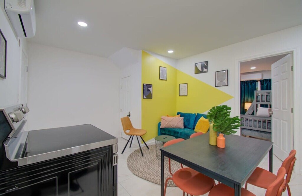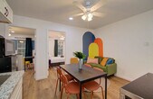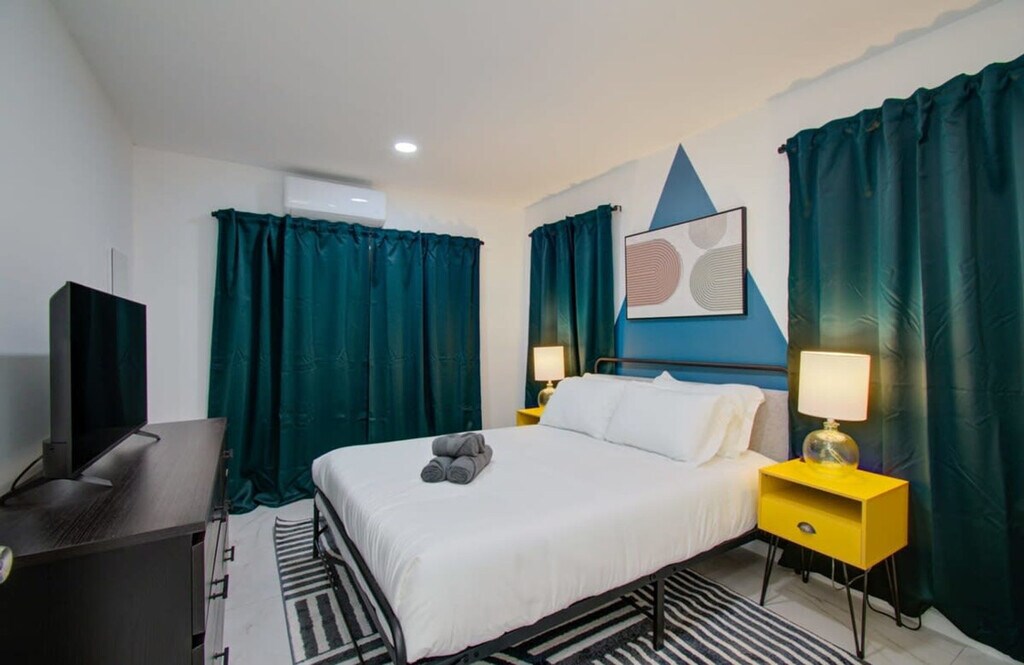 Welcome to your home away from home in the heart of Houston! This trendy area is just minutes from downtown, nestled on a tree-lined street a few blocks from the beautiful Buffalo Bayou. This house features four separate units, each with independent access, offering a total of eight bedrooms and four full private bathrooms. Enjoy the convenience of a central location with easy access to restaurants and attractions, making it the perfect getaway. Each unit in this house is designed to provide a welcoming and comfortable "home away from home" experience. With fully equipped kitchens, sleek modern dining tables, and cozy living rooms, you'll have everything you need for a pleasant stay. The primary bedrooms feature queen-sized beds, while the second bedrooms offer bunk beds, accommodating up to 22 guests in total. Enjoy the convenience of in-unit laundry facilities and essential toiletries provided for your comfort. Guests can enjoy complimentary parking and access to a backyard space. This pet-friendly property welcomes house-trained pets with a non-refundable pet fee of $150 per pet, with a maximum of two pets per stay. An additional nightly rate applies for more than six guests, with a $29/night fee for each additional guest. Located in central Houston, this property offers the best of both worlds with the perfect blend of culture and nature. You're just minutes away from some of Houston's best restaurants and attractions, with easy access to Interstates 10, 45, 69, and 610 for exploring the wider Houston metropolitan area. Nearby attractions include the Houston Museum of Natural Science, Minute Maid Park, and vibrant neighborhoods like Midtown and Montrose. The property is located near train tracks, so train noise may be heard at times, but a white noise machine is provided for added comfort. The neighborhood is more urban and may feel less polished compared to other areas of the city. Guests will share access to outdoor spaces and laundry facilities with other residents. Smoking of any type is not allowed, with violations subject to a $450 fine plus cleaning costs. Check-in is at 4pm and checkout is at 10am. Only registered guests are allowed, and small low-key gatherings are allowed only upon request and approval in advance. Security cameras are present for compliance with local laws, but rest assured, there are no cameras in any private areas. Each unit is equipped with high-speed Wi-Fi and a comfortable living area, making it suitable for remote work. A flat-screen TV is available for entertainment, and a white noise machine is provided for restful sleep. [SI]