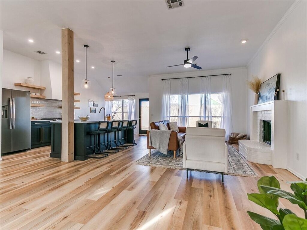 This beautifully updated home in a gated Deer Creek community features new luxury vinyl plank flooring, fresh interior paint, stylish light fixtures, and a fully renovated kitchen with quartz island, designer vent hood, tile backsplash, porcelain farm sink, and stainless steel appliances. Enjoy the warmth of a real wood-burning fireplace and natural light from large windows. The private backyard is enclosed with a new 8-foot wood fence. Neighborhood amenities include ponds, greenbelts, and two gated entrances. Schedule your showing today! All Hallmark Property Management tenants are enrolled in the Residential Benefits Package (RBP) for $35/month which includes HVAC air filter delivery (for applicable properties), our best-in-class resident rewards program, and much more! More details upon application