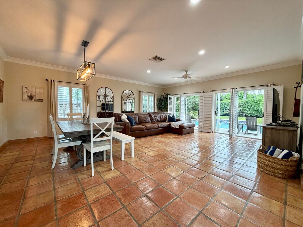Spacious 4-bedroom, 3-bath pool home with 2,509 sq. ft. under air, offering a private resort-style setting and exceptional outdoor space. This home features a detached two-car garage, a large driveway, and a generous backyard with a pool, covered patio, and storage shed.The first floor includes a large living room overlooking the pool, a U-shaped kitchen with ample cabinetry and seating area, a dining room with pool views, a second living area with built-in cabinets and laundry, and one bedroom. Upstairs features a spacious primary suite with a large walk-in closet, built-ins, and a bathroom with dual sinks.Enjoy privacy with mature hedges and plenty of room for outdoor activities. Pet friendly and no HOA. Conveniently located near Lake Clarke Shores boat ramp for easy water.