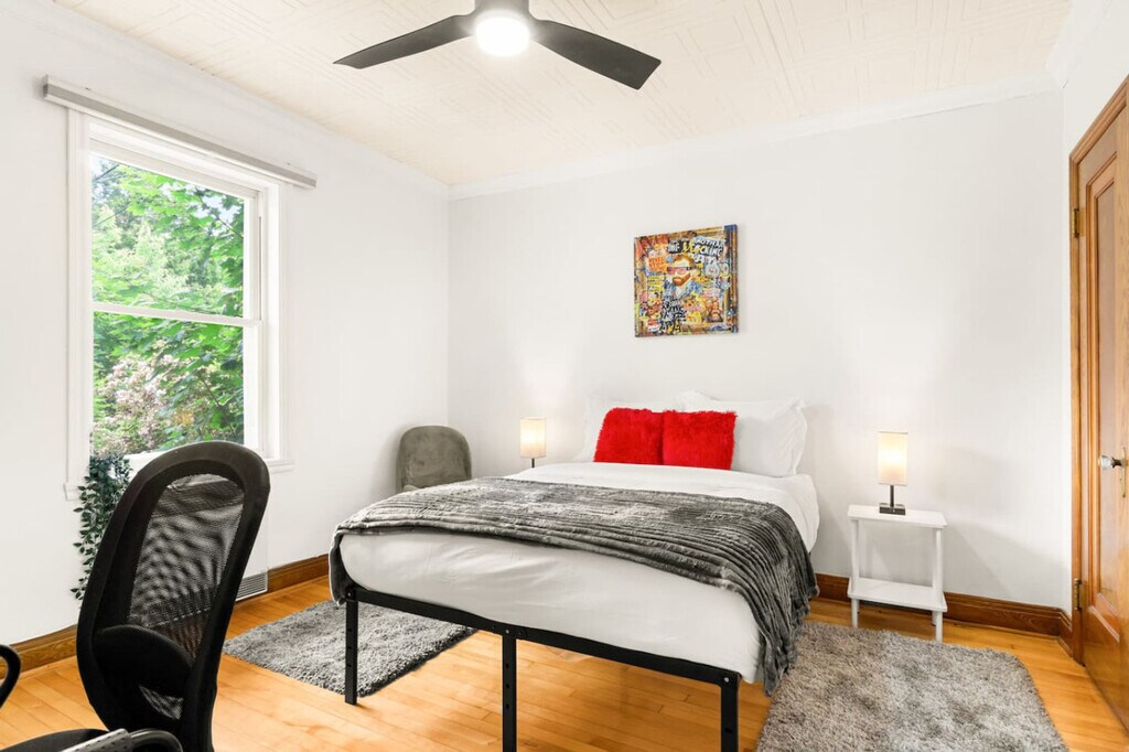 Feel at home in this spacious and stylish 4-bedroom apartment in Rosemont, perfect for families, students, or professionals. This beautifully renovated home offers modern comfort with a cozy vibe, featuring a bright living room, a fully equipped kitchen, and a fun game room. Enjoy the private backyard, terrace, BBQ, and included parking, all designed to make your stay comfortable and enjoyable. This apartment is designed with your comfort in mind, offering quality beds, high-speed Wi-Fi, and air conditioning. The fully equipped kitchen and laundry area ensure a convenient stay, while the game room with arcade, PlayStation, and board games provides entertainment for all ages. A private parking space is available at no extra cost, ensuring convenience for those traveling by car. Located in the heart of Rosemont–La Petite-Patrie, this property places you in one of Montreal’s most vibrant and welcoming neighborhoods. Within walking distance, you'll find Maisonneuve Park, the Montreal Botanical Garden, the Biodome, and the iconic Olympic Stadium. The area is also home to trendy cafés, artisan bakeries, bike paths, and local markets like the Jean-Talon Market. Easy access to public transportation makes exploring the city a breeze. Check-in is available any time after 4:00 p.m., and check-out is by 11:00 a.m. Smoking in the apartment is strictly forbidden, with a penalty of $500 for violations. Pets are not allowed, and failure to comply will result in a $500 penalty and immediate eviction without refund. Parties or excessive noise are not permitted, with a $500 penalty and immediate expulsion for violations. If the apartment is left in a messy condition, a charge of $40 per additional hour per housekeeping attendant will apply. Guests assume full responsibility for any accident, injury, or illness occurring in the apartment. If more guests than initially stated in the reservation sleep at the apartment, a $500 penalty will be charged. Delaying housekeeping attendants at check-out will incur a $50 charge, and any guest remaining after 1:00 p.m. will be charged for an additional night. Registration Number: 321351 [SI]