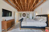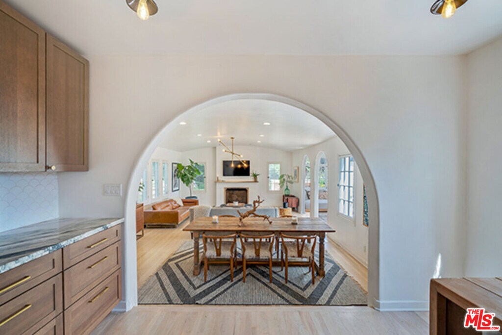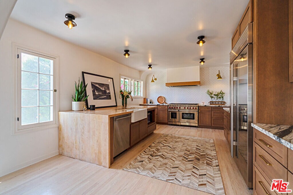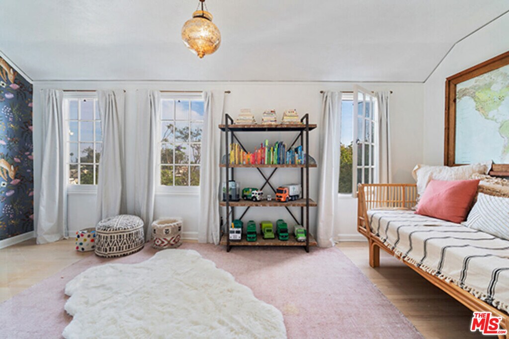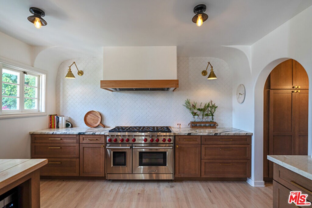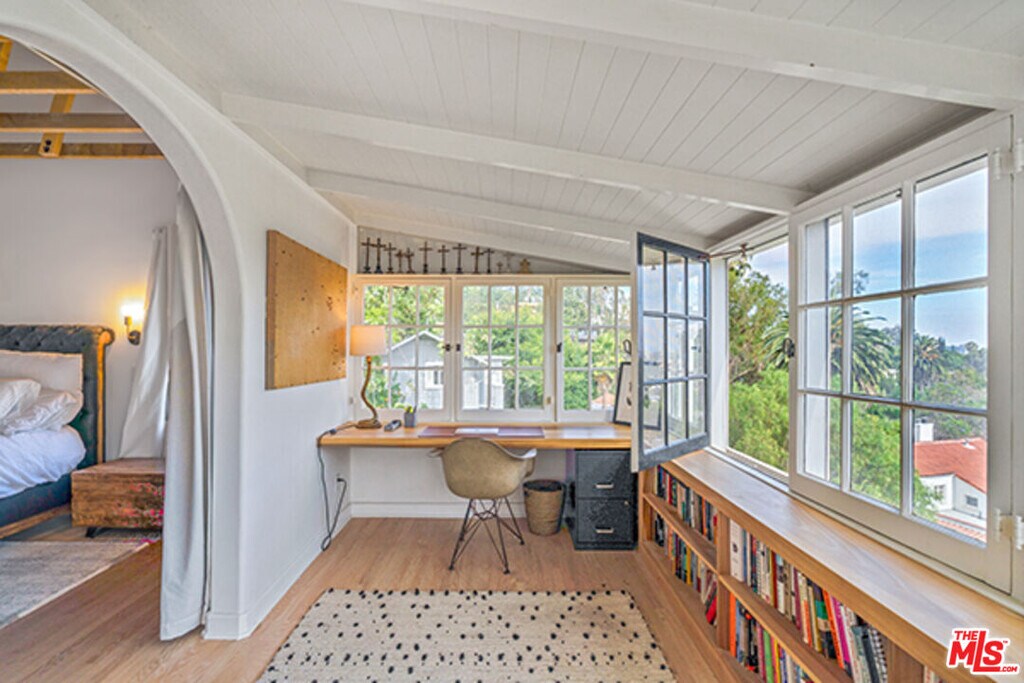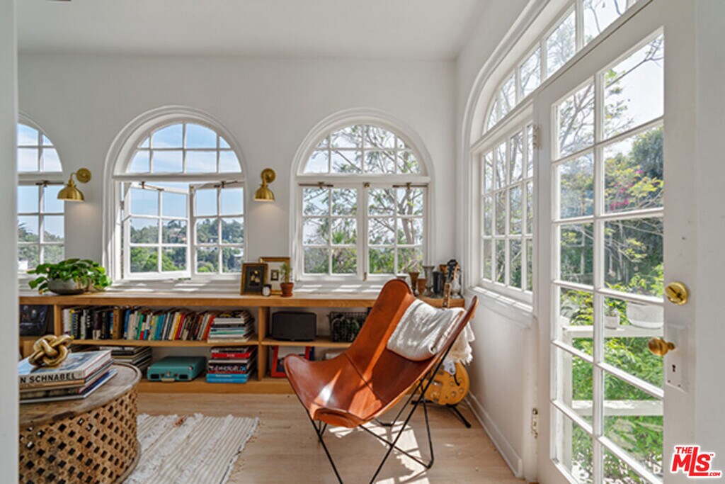 Hollywoodland Private 1923 historical Spanish retreat on a large double view lot. Fully furnished with a bohemian lived-in style. Renovated while retaining the original integrity. The kitchen features an 8-burner Wolf range, Sub Zero refrigerator, & marble counters. The open living room is anchored by a fireplace & has barreled ceilings w/archways. Light floods through the french windows that frame the expansive views. Upstairs each of the 3 bedrooms are unique & private. The primary suite has an exposed wood beam ceiling that carries through to the primary bathroom w/soaking tub. The sleeping porch doubles as an office & has some of the best views of LA. Additionally there is a guest suite w/separate entrance & full bathroom. The grounds take this property to the next level! Stairs, off the living area, lead to an open patio w/fountain. The adj alfresco dining area is a lovely place to socialize. The swimmers pool has a built-in hot-tub & baja shelf. The rear of the property has a large sport court area w/ fruit trees. Living in the Hollywood Hills with this much usable land is a true dream! MLS# 26643399