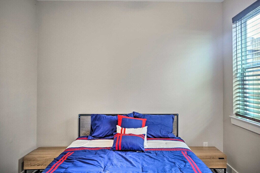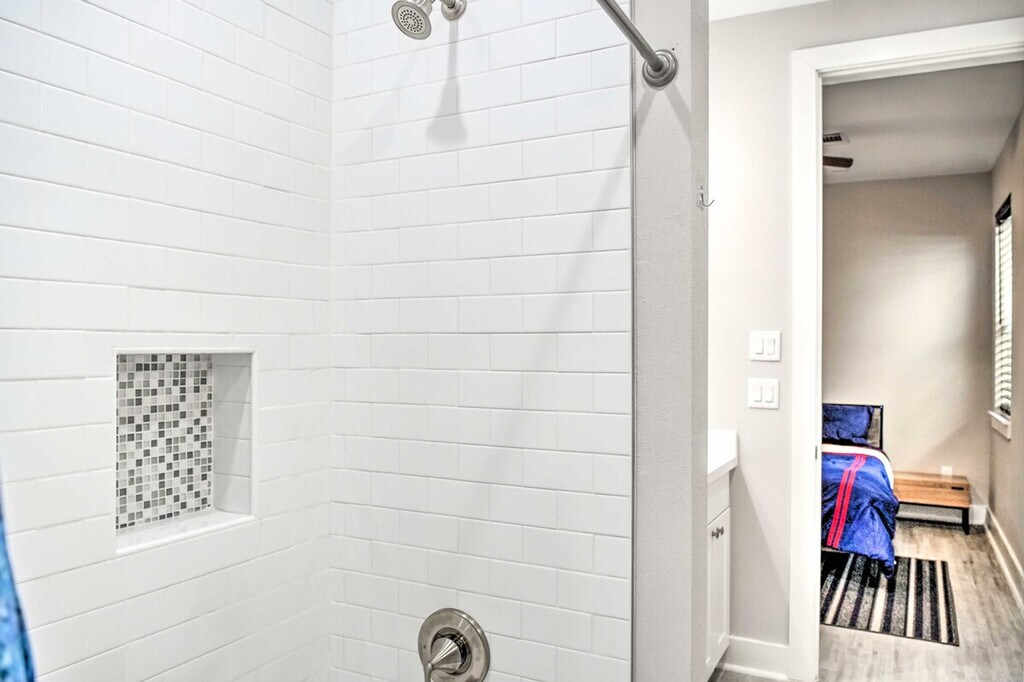 Feel at home in this 3-bedroom, 3.5-bathroom home in Houston, outfitted with all the essentials to ensure a cozy stay. Please note that stairs are required to access the property, which may be difficult for guests with limited mobility. This 2,689-square-foot home features an open-concept interior with a dining area and modern decor. The fully equipped kitchen includes cooking basics, a coffee maker, a knife set, and an island with barstools. Enjoy access to 2 smart TVs, in-home laundry machines, linens, towels, complimentary toiletries, trash bags, a paper towel, and an iron and board. Central heating and A/C are provided for your comfort. Garage parking is available for 2 vehicles. Pets are welcome with a fee of $100 plus fees and taxes. Ideally located near many hospitals and medical centers, this home is also a short distance from local Houston attractions and 5 miles from downtown. No smoking, events, parties, or large gatherings are permitted. Your safety matters. This property features 1 exterior security camera located on the front door, facing outward. It does not look into any interior spaces. The camera records video and sound when activated by motion. It will record when it first senses motion and 30 seconds after the last motion is detected. [SI]