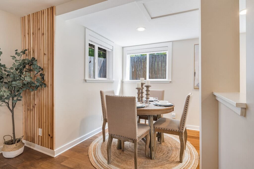 Experience the beauty and convenience of this newly remodeled 2-bedroom, 2-bathroom oasis in the vibrant Seaview neighborhood. Feel at home in this stylish interior with entertaining and comfortable amenities, just a rapid ride away from Alki Beach, Lincoln Park, excellent restaurants, shops, attractions, and landmarks. Welcome to your urban oasis in the heart of Seattle's charming Seaview district. From the moment you step into this recently remodeled house, you'll be surrounded by stylish décor and natural lighting, providing comfort and warmth throughout. The open-concept living area boasts a fully equipped kitchen and dining space, perfect for enjoying a home-cooked meal. The bright and airy living room is the ideal spot to relax after a day of exploring the city. The master queen and guest bedrooms feature comforting 5-star amenities for a restful night's sleep. A workspace next to the kitchen allows you to switch from business to pleasure in seconds. If you arrive by car, enjoy free street parking. For those avoiding driving, convenient transportation options include car rentals, buses, light rail, taxis, and rideshare services. Early check-ins are available for a fee of $25 per hour before the standard check-in time, and late check-outs are $50 per hour after 11am. A blow-up air mattress is available to accommodate additional guests. The cottage is in Seaview, a charming neighborhood on the shores of the breathtaking Puget Sound in Seattle, Washington. Enjoy proximity to the waterfront with awe-inspiring views of the glistening waters and the majestic Olympic Mountains. Seaview offers easy access to parks like Lincoln Park, perfect for exploring forested trails or relaxing on the sandy beach. The neighborhood's culinary scene reflects the region's emphasis on fresh, locally sourced ingredients. Seaview's location makes it an excellent starting point for exploring Seattle's attractions like Pike Place Market, the Space Needle, and downtown, all just a short drive or bus ride away. The home is exclusively yours during your stay, so relax and make yourself at home. Quiet hours are from 10pm to 7am daily, and failure to adhere can result in a $100 fine per incident. No pets are allowed, and bringing one will incur a $500 fine. No parties or events are allowed, and violations can result in a deep cleaning fee between $500-700. Smoking of any kind is prohibited, and a $250 deep cleaning fee will apply if smoke debris or smell is detected. Ensure the number of guests matches your reservation, as there is a $50 fine per excess guest. You are not permitted to send or receive mail from this address during your stay. Traveling on business or just need a private corner to check your email? Bring your laptop to the designated office space by the kitchen, equipped with a desk, chair, and lamp. Registration Number: STR-OPLI-23-000474 [SI]