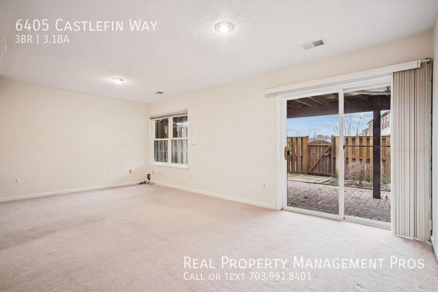 Welcome home to 6405 Castlefin Way, a sunny and updated townhome located in the heart of the highly desirable Kingstowne community. Enjoy the lifestyle that makes Kingstowne so popular, including easy access to community amenities like the pool in the summer and the local farmers market on Friday nights. From the moment you step inside, you will love how bright and inviting the home feels. Upstairs, the main living level features a grand, open layout that is perfect for hosting friends and family. The open concept flow makes entertaining easy, with an updated kitchen and a sunny eat in area that is ideal for morning coffee or homework time in the evening. The adjacent dining area offers plenty of space for holiday gatherings and dinner parties. On the upper level, you will find three spacious bedrooms. The primary suite is generously sized with excellent closet space and a spa like primary bathroom. Two additional large bedrooms and a full hall bath complete the level, along with the convenience of a washer and dryer located on the bedroom level. The lower level offers a versatile recreation room with walk out access to the patio, creating the perfect space for a guest area, home office, gym, or additional living room. Step outside and enjoy the patio as an extension of your living space. This location is hard to beat. You are close to Kingstowne shopping and dining, nearby parks and trails, and convenient Metro access via Franconia Springfield and Van Dorn Street. Commuters will appreciate quick access to major routes including I 495, I 95, and I 395. The home is also well positioned for access to major military installations in the region, including Fort Belvoir, the Pentagon, and Joint Base Myer Henderson Hall. Stop by this weekend!! $0 Security Deposit Option for Qualified Residents! See resident brochure or property manager website for more details. -------------------------------------------------------- Resident Benefits Package is Required with ALL lease agreements managed by Real Property Management Pros. The Real Property Management Pros Resident Benefits Package (RBP) delivers savings and convenient, professional services that make taking care of your home second nature. By applying, Applicant(s) agree to be enrolled and to pay the applicable monthly TOTAL cost of $45.95 per household. Your RBP may include, subject to property mechanicals or other limitations: - Renters Insurance that meets all lease requirements from an A-rated carrier - HVAC air filter delivery directly to your door approximately every 90 days. - Move-in concierge service: one call set up your utility services, cable, and internet services - A resident rewards program that helps you earn rewards for paying your rent on time. - Credit building to help boost your credit score with timely rent payments. - $1M Identity Protection for all adult leaseholders - 24/7 online maintenance reporting - Home buying assistance for when the time is right to buy your “forever” home. - Online portal: Access to your account, documents, communication and payment options. - Vetted vendor network: we find the technicians who are reputable, licensed, and insured. NOTE: The total monthly cost of the Resident Benefits Package is all-inclusive, and no discounts will be given if any element of the package is unavailable due to a lack of HVAC or another limitation at a specific property. See resident brochure or property manager website for more details. -------------------------------------------------------- Pet-Friendly Pet Policy This home is pet-friendly and will accept a maximum of 2 pets that are at least 1-year old. You will need to complete an online pet profile and pay a non-refundable pet application fee of $20 per pet if paid by ACH (or $25 if paid by credit card). If your pet is approved, you will need to pay a non-refundable pet fee of $350 per pet plus a monthly pet administration fee of $30 per pet. Real Property Management Pros does accept assistant animals per state and federal guidelines. If you have an assistance animal, you must still complete an online animal profile. There is no application fee for this process. None Single Family Home