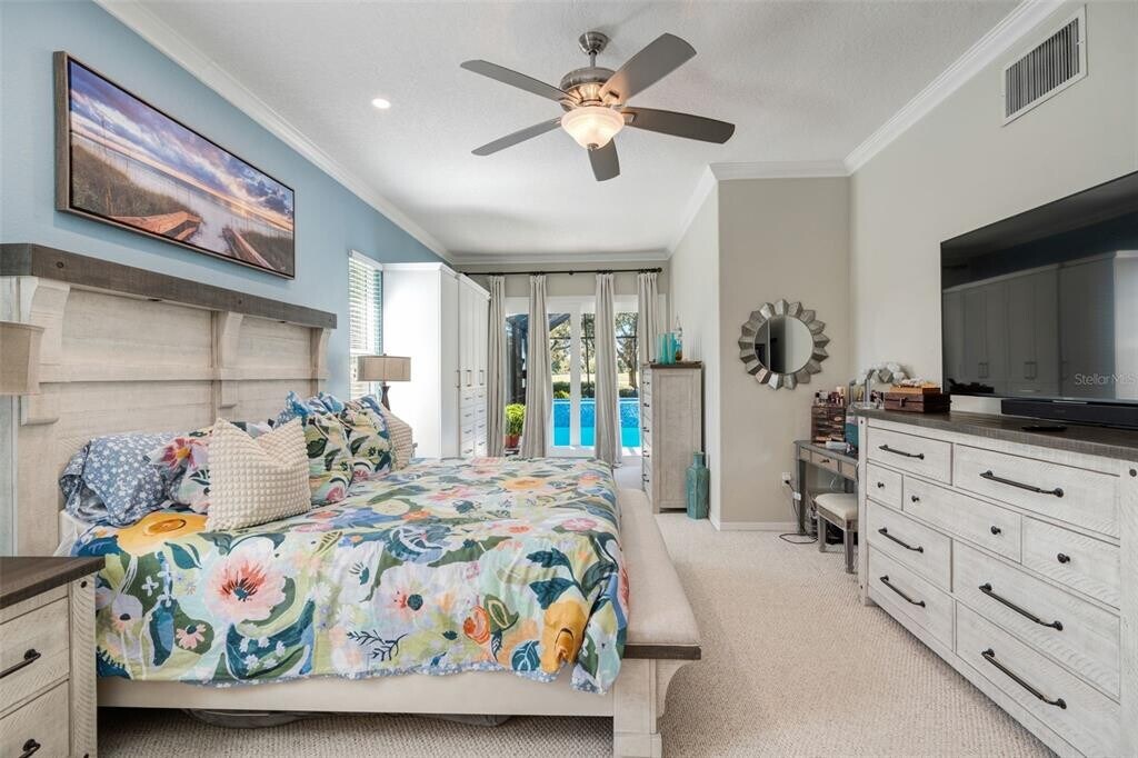Available for lease in the River Club North community of Lakewood Ranch,this brick facade residence offers 3,221 square feet of spacious,well appointed living overlooking the 6th hole of the golf course. This home is a comfortable walk away from Braden River Elementary School and only 5 miles from Braden River High School and Lakewood Ranch High School. With three bedrooms,three bathrooms,and ceiling heights ranging from 10 to 16 feet,the home provides an open layout ideal for both everyday living and entertaining. Upon entry,the home is anchored by a regal,hurricane grade front door that sets the tone for quality construction and peace of mind. Polished tile flooring runs throughout the home,creating a clean,cohesive look that is both elegant and easy to maintain. The primary suite features direct slider access to the pool and patio,an updated en suite bathroom,and a custom walk in closet. Outdoor living is a highlight,with a screened pool and patio,in ground spa,and extended tile pavers that continue beyond the enclosure and face the pristine golf course,offering privacy and scenic views. In the garage,the owners have left a full sized refrigerator and a full sized stand up freezer. Circuits for back up power is available for severe power outages and the home includes a gas powered generator that is connected to a separate breaker. Situated on a half acre lot,the property also features an expansive driveway and a side entry three car garage,providing ample parking and storage. This home offers a rare opportunity to lease a golf course residence with generous interior space,refined finishes,and a premier Lakewood Ranch location. MLS# A4680855