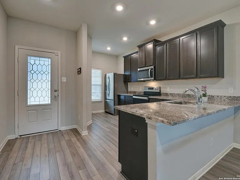 Super clean, Solar panel home on an oversized lot covered patio with average Electric bill per moth $30-50 when other same home around 350$. Just a short drive to JBSA Lack-land quick access to US-90 Hwy. Has modern kitchen is equipped with stainless steel appliances brand new Fridge and washer and dryer, Large granite counter top , 5 stage with alkaline water filter , The main suite 1st floors has bathtub and shower combo with double granite sinks all other 4 rooms in second floor has lager loft space. The home is wired with security provided by ADT ( all door and windows sensors, Drive way cam , backyard cam , doorbell cam, monitored smoke detector with carbon monoxide, Control Panel Screen with phone access). All you need to do is contact ADT to activate (You are responsible for monthly monitoring fee). Every bedroom has a large walk-in closet. If you want a nice Community with private park, kids playground, walking trails, water splash, baseball field, basketball court and soccer field- look no further. Elementary school on-site. We can partially or fully furnished for additional charge if requested. Date Available: Sep 14th 2025. $2,499/month rent. $2,500 security deposit required. Please submit the form on this page or contact Mohamed at to learn more. This property is managed by a responsible landlord .