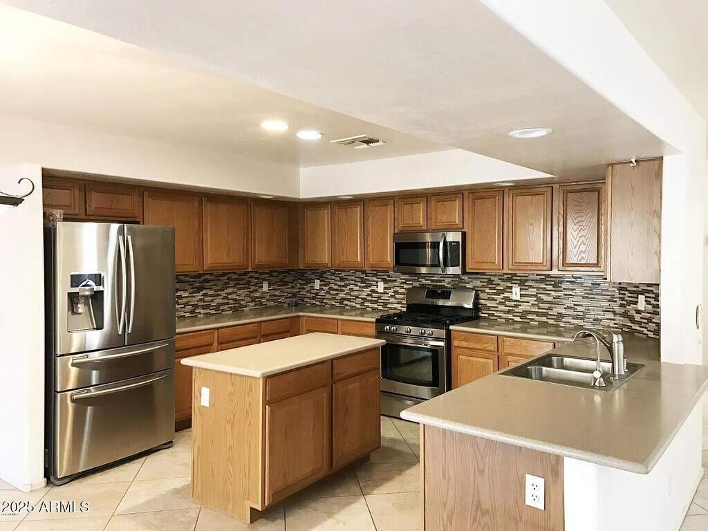 Limited time offer - Free rent for December if you sign a 1-year lease by Nov 25th. 🏡 Move-In Ready - 4BR/3BA + Den - 3,215 sq ft - Pool - Mountain-View Balcony - 3-Car Garage. This home features a flexible layout,modern upgrades,and standout amenities including a private pool and balconies with mountain views. With 4 bedrooms,a dedicated den,and a full bathroom on the first floor,it works well for families,remote workers,guests,and multi-generational living. Inside,the home is newly painted and updated with LVP flooring in every room and bathroomno carpet anywhere. The upstairs bathrooms are remodeled with clean,contemporary finishes. The bright kitchen offers stainless steel appliances,ample cabinet space,and great natural light. Open living and dining areas provide a functional,comfortable flow. Upstairs,the primary suite includes a walk-in closet,remodeled ensuite bathroom,and a private mountain-view balcony. Outside,enjoy a sparkling private pool,low-maintenance desert landscaping,and outdoor space designed for Arizona living.