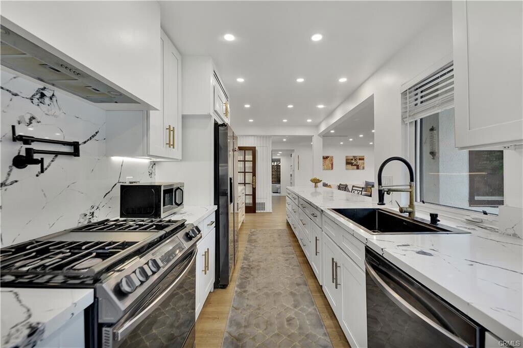 - Welcome to this exceptional Lake Balboa residence,an elegant, fully remodeled home offering bright, airy living spaces and a seamless open-floor concept designed for both comfort and sophistication. Perfectly situated in a desirable neighborhood and Encino adjacent, this property provides convenient access to upscale dining, shopping, and entertainment while enjoying the value and charm of the sought-after Lake Balboa community. The main home features approximately 2,482 sq. ft. of beautifully updated living space. The primary suite serves as your private retreat, complete with abundant natural light, extensive closet space, and a sleek, modern en-suite bathroom. Two additional spacious bedrooms and a contemporary full bathroom ensure plenty of room for comfortable living. Throughout the home, you’ll find gorgeous hardwood floors, marble finishes, and quartz countertops that elevate the overall aesthetic. The designer kitchen is a chef’s dream, equipped with high-end amenities and ample storage, all flowing effortlessly into the expansive living and dining areas. Floor-to-ceiling accordion doors open to a serene patio and backyard oasis, creating the perfect indoor-outdoor experience. Enjoy the inground jacuzzi, gather around the impressive firepit, or take advantage of the fully functional outdoor kitchen for effortless entertaining. A large, bright office/workshop offers additional flexibility for work or creativity. Above the main house, a 592 sq. ft. in-law suite awaits, complete with two private entrances, a living room, kitchen, full bathroom, office nook, skylights, and a generously sized bedroom with a built-in refrigerator. This versatile space is ideal for extended family or guests. Located in the heart of Lake Balboa, this home embodies luxury living with exceptional versatility and style. Don’t miss your opportunity to experience all this remarkable home has to offer. Listing provided by: Victoria Wirth of Hoffman Theus LA State License 2121870 Listing posted by Fernando Valen [SYNDID 4144547 11232025]