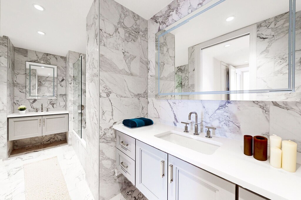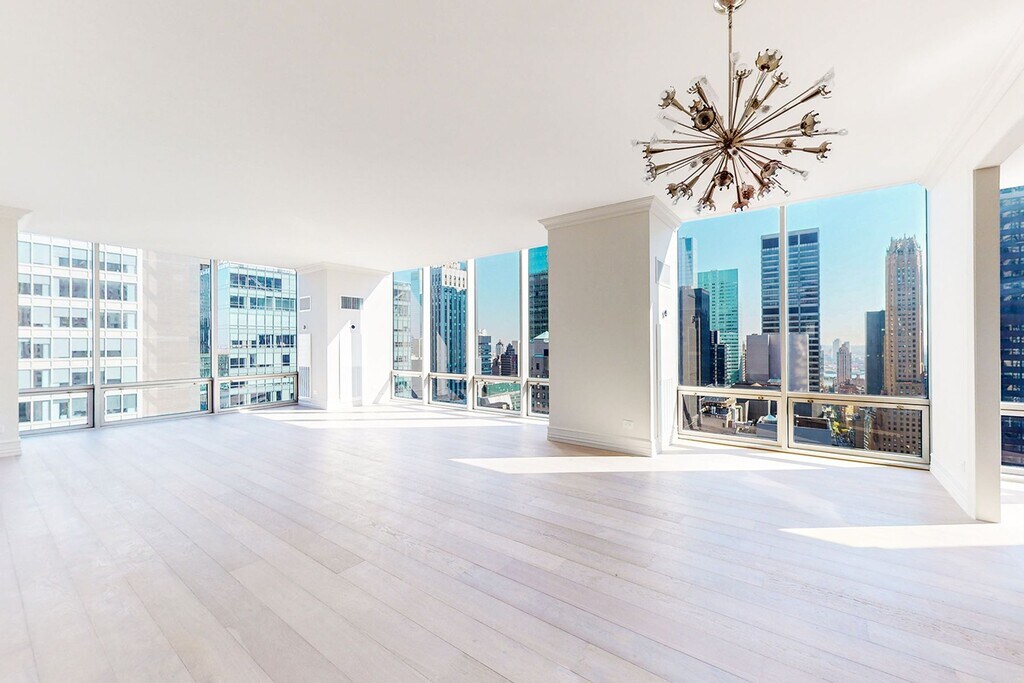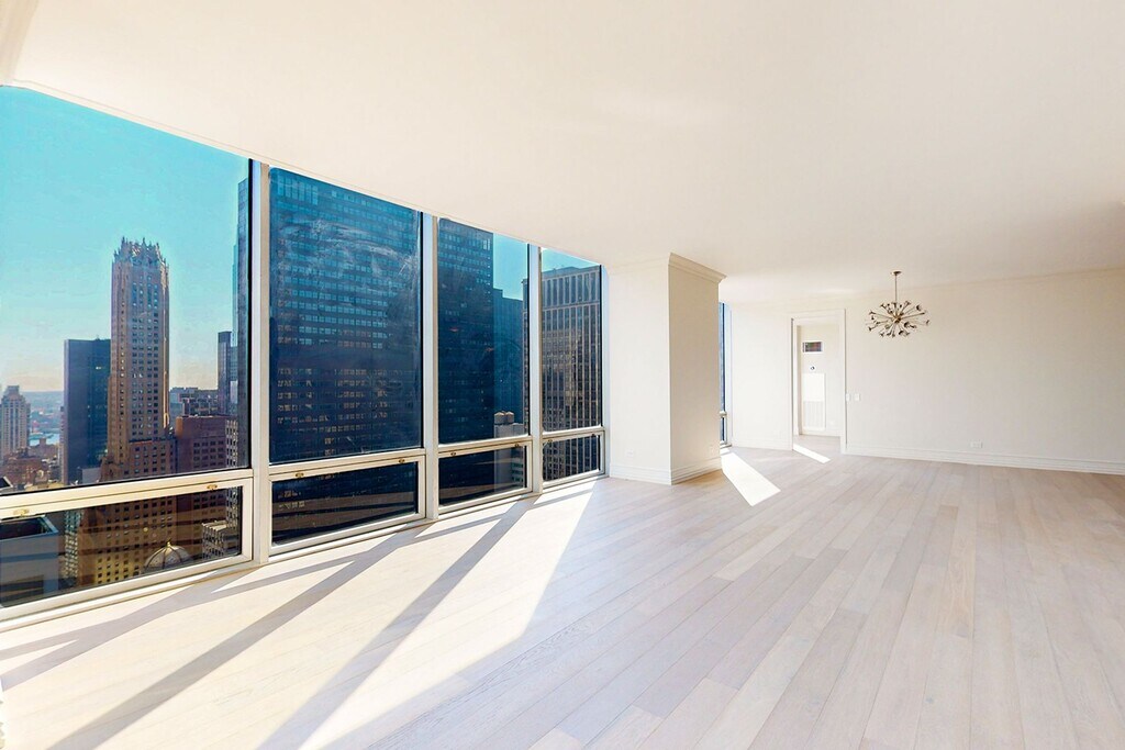 RESIDENCE 29D IS SPECTACULARLY DESIGNED AND GUT-RENOVATED TO PERFECTION. An elegant 1,800 sq ft +/- 2 bedroom/2 ½ bathroom North/East corner apartment in the iconic Olympic Tower featuring breathtaking North views of Central Park, New York City skyline, and East views of the City all the way to the east river thru massive floor-to-ceiling windows. The unit has a gracious entry foyer and a tremendously wide living area with a stunning view of the New York City skyline. The Master Bedroom has an en-suite marble bathroom and two overabundance of fitted storage. There is a new full second bathroom with a deep soaking tub. You can enjoy Central Park View in both bedrooms. The kitchen was renovated with stainless steel appliances, a dishwasher, and microwave oven, and a closet with a new washer and dryer. All of the air-conditioning/heating units were replaced to be compliant with the condominium’s requirement that these systems be modernized. New wide hardwood floors throughout the unit. Olympic Tower is one of the most exclusive condominium buildings in the world. With an affluent Fifth Avenue address, a full-time concierge (for obtaining theater tickets, dining, and sporting events reservations, limo service, etc.), and full-time doormen/elevator operators – your privacy is always a priority. Access to a well-equipped gym on the 22nd floor is included. The building does not permit dogs and requires a 1% transfer fee of the purchase price by the Buyer. Corporate and investor friendly. A fantastic opportunity to rent in a prime, renovated home in one of the most famous condominiums in the world! The building is located across the Street from St Patrick’s Cathedral and Rockefeller Center and is at the center of Manhattan’s premiere shopping center along Fifth Avenue. First Class service and all that Manhattan has to offer is at your doorstep!