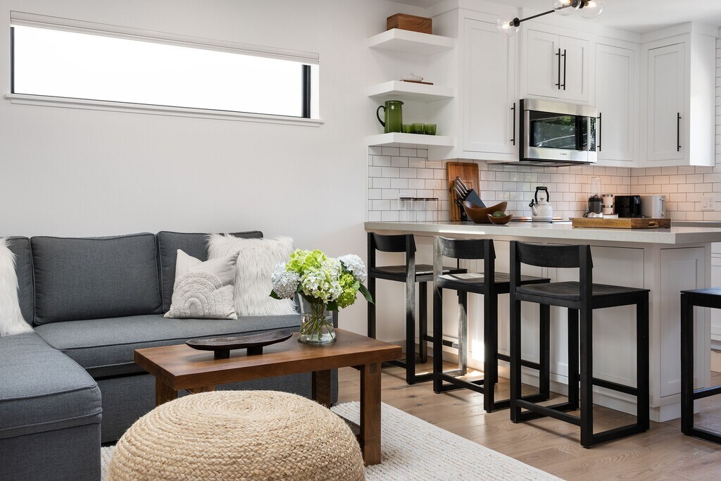 Step into luxury with this beautifully appointed, fully furnished one-bedroom, one-bathroom rental, thoughtfully designed for comfort and sophistication. This rare two-story residence offers a seamless blend of high-end finishes and modern convenience. From the moment you enter, natural light pours through Velux skylights, highlighting the elegant Red Oak wide plank solid wood engineered flooring that flows throughout. The updated kitchen is a chef’s dream, featuring quartz countertops, premium Bosch and Fisher & Paykel appliances, and a sleek contemporary design. The spacious upstairs bedroom serves as a private sanctuary, complete with an ensuite bath boasting heated porcelain tile floors, a heated towel rack, and a generous walk-in built-in wardrobe closet. Enjoy the ultimate in light control and privacy with remote-controlled Hunter Douglas Applause Honeycomb Top-Down/Bottom-Up power shades. Outdoor living is just as charming with a front porch and an upstairs balcony ideal for quiet morning coffee or evening relaxation. Additional highlights include a dedicated laundry room, HVAC mini-split system with full heating, ventilation, and air conditioning, and dusk-to-dawn exterior sconces for added ambiance and security. This is a rare opportunity to lease a truly exceptional home that offers luxury and style in every detail. Fully Furnished | All Utilities Included | 3 Months Lease Minimum | Garage not included Lease available 11/1/25 through 05/31/26