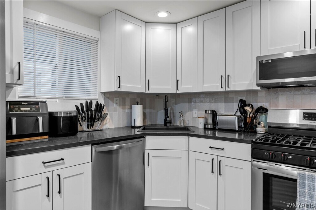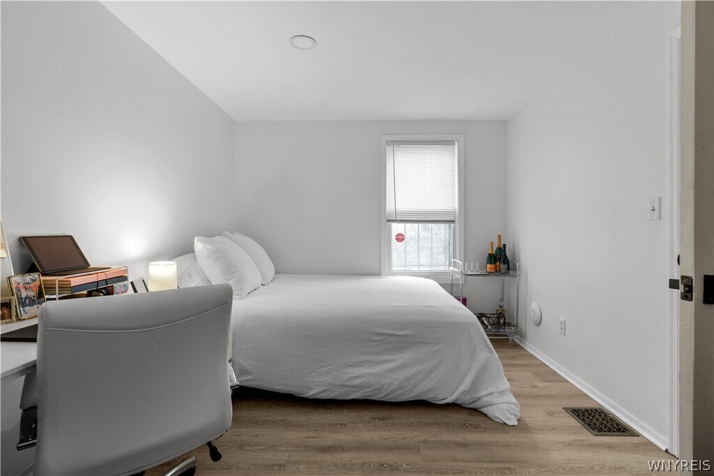 This stylish,2-bedroom,1-bath apartment is ideally located in the heart of Elmwood Village,just minutes from Delaware Park and the Albright-Knox Art Gallery. Enjoy the convenience of being steps from vibrant Elmwood Avenue with its shops,cafes,and restaurants. Features include stainless steel appliances,IN UNIT LAUNDRY,a charming brick fireplace (decorative),updated lighting,ample storage,off-street parking,and a modern,comfortable layout. 2 LARGE bedrooms. Lower unit has full access to front porch. Perfect for those seeking a modern apartment in a prime location! Water and wifi included in the rent. Tenant pays gas and electric seperate. 1 off street parking spot included. 24 hour cameras on the premise for ease of mind. Keyless entry. Storage available in the basment. This is the LOWER unit of a 2 unit duplex. SHOWINGS BEGIN MAY 20TH,2026. Please contract listing agent for a showing. Pet friendly with "OK" from the landlord. This is a SMOKE FREE building. MLS ID B1675841