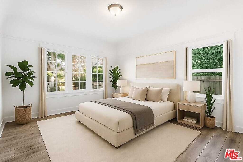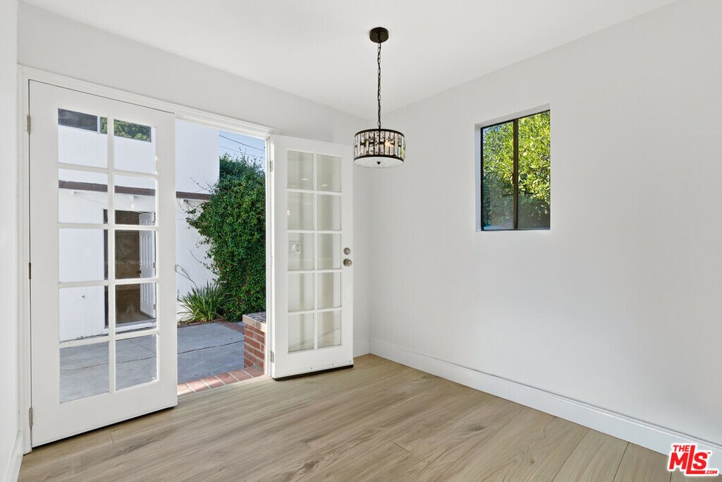 Experience timeless design and modern convenience in this beautifully updated Spanish-style home in the heart of Melrose. Behind its classic stucco facade and tiled roof, you'll find a light-filled layout with hardwood floors, arched entries, and thoughtfully renovated interiors. The spacious living and dining areas flow into a sleek kitchen with stainless steel appliances and a sunlit breakfast nook. Three generously sized bedrooms and two full bathrooms offer a flexible layout, while French doors open to a private, fully enclosed backyardideal for relaxing or entertaining. A detached bonus studio adds extra space perfect for a creative workspace, guest retreat, or gym. Additional highlights include central air and heat, in-unit laundry, gated off-street parking, and an unbeatable location moments from The Grove, Beverly Center, Fairfax Village, and popular Melrose cafes, boutiques, and streetwear pop-ups. An optional detached guest unit may be leased for an additional monthly fee. Lease must begin before December 31. MLS# 25617061