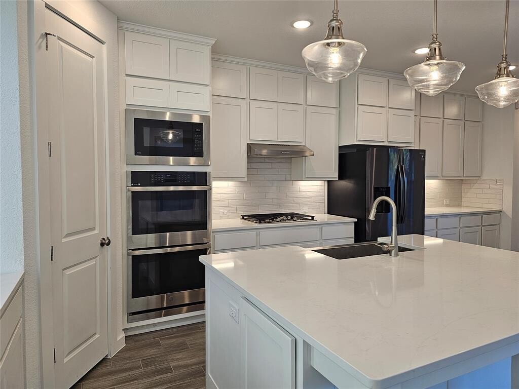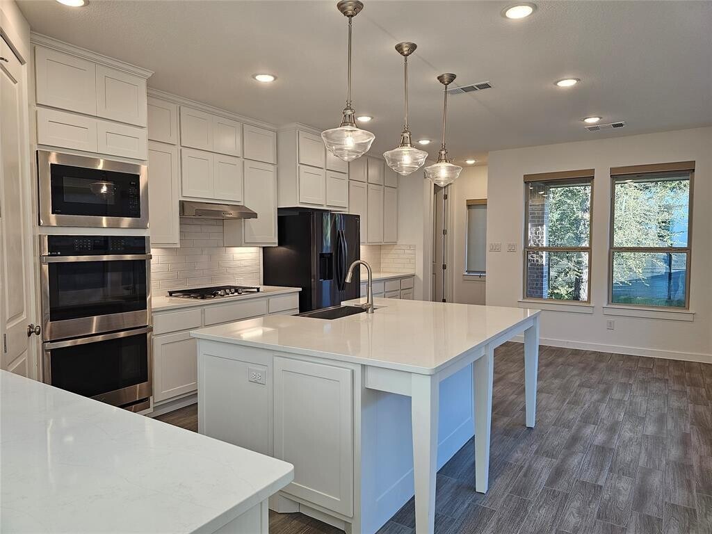Welcome to this spacious Wolf Ranch 4 bed / 3 bath home conveniently located near schools, shopping, and dining with access to I-35, Hwy 29, and the newly expanded Southwest Bypass. The seamless flow between the living spaces creates an inviting atmosphere, perfect for both entertaining and everyday living. The high ceilings in the living room, coupled with an abundance of windows, flood the space with natural light. Stepping into the expansive kitchen notice the large center island with seating plus a separate breakfast bar offers even more seating options, making it perfect for morning coffee or a quick snack. Additional features throughout the kitchen include a gas cooktop, built-in oven and microwave, and a large dining area. Also located on the main level is the primary suite with walk-in closet, dual vanity, and separate shower. Another bedroom with access to the hallway full bath is found on the main level plus a laundry room. At the top of the stairs is a spacious game room/flex space providing an additional living area for movie night or even a home office space. Two additional rooms on the upper level share a hallway bath. Pet Policy: Breed restrictions. $175 Pet deposit plus $175 non-refundable pet fee plus $10 monthly pet rent for first pet. Second pet requires a $50 pet deposit plus a $50 non-refundable pet fee plus a $5 monthly pet fee. Tenant criteria: