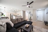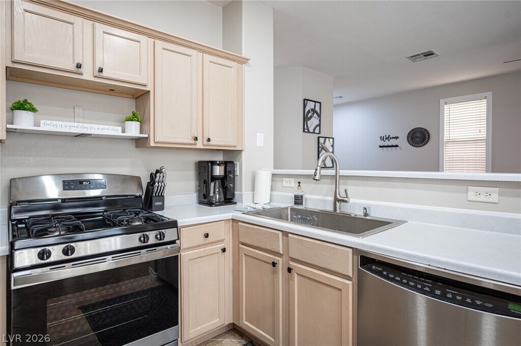 Beautifully upgraded Fully Furnished home in gated community, The View. Tastefully decorated, 2 bed, large loft, 2.5 bath with all the comforts of home. Relax in the stylish great room and enjoy all the amenity’s this house has to offer. Smart TVs in each bedroom and Great room. Fully stocked kitchen with all stainless-steel appliances, air fryer, coffee maker, microwave and all kitchen essentials. Large Primary Bedroom with King Bed, ceiling fan, Balcony with stunning views of the mountains. Walk-in closet, double sinks and large soaking tub and shower. 2nd bedroom with Queen Bed, walk-in closet. Loft with designated work area and small balcony. Laundry area located upstairs. Relaxing backyard with covered patio, BBQ grill, fully landscaped with patio furniture.2 car garage and blink outdoor cameras. Community offers two sparkling Pools, park, playground. Shaded Canyon trailhead hiking trail is conveniently located nearby. 15 mins to strip/airport, shopping, restaurants and much more.