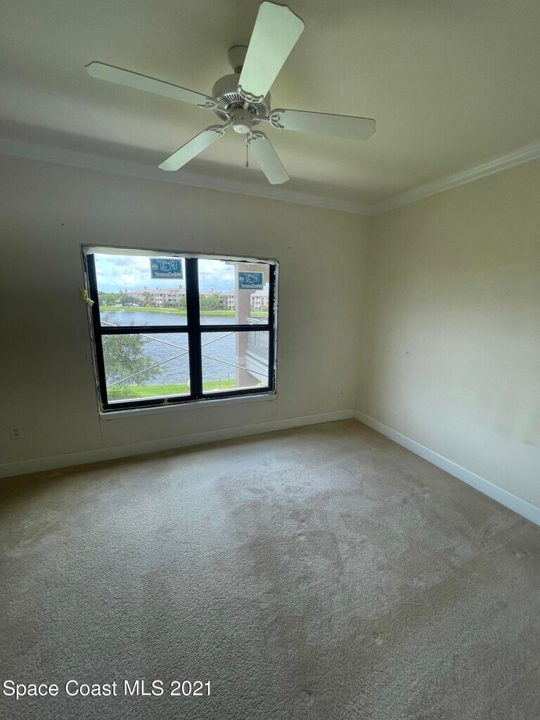 2BD/2BA on 3rd floor,single family Condo affords a beautiful water view from the balcony and from every window. Living/dining combo,carpet in bedrooms and living room/dining room and tiled bathrooms. Central cooling/heating. Kitchen designed with a breakfast bar,appliances,and vinyl flooring. Master bedroom has his/hers closet and tub/shower in bathroom. Separate laundry room and storage room. New hurricane proof windows and sliding doors throughout. Two assigned parking spaces. Enjoy a cool dip in the community pool or soak in the hot tub/spa,get an energizing work-out at the fitness center or relax under the covered veranda or clubhouse. Basic cable included in rent. Absolutely No Pets Allowed.