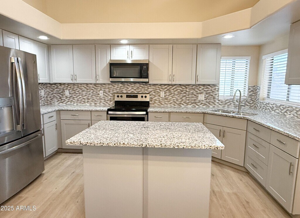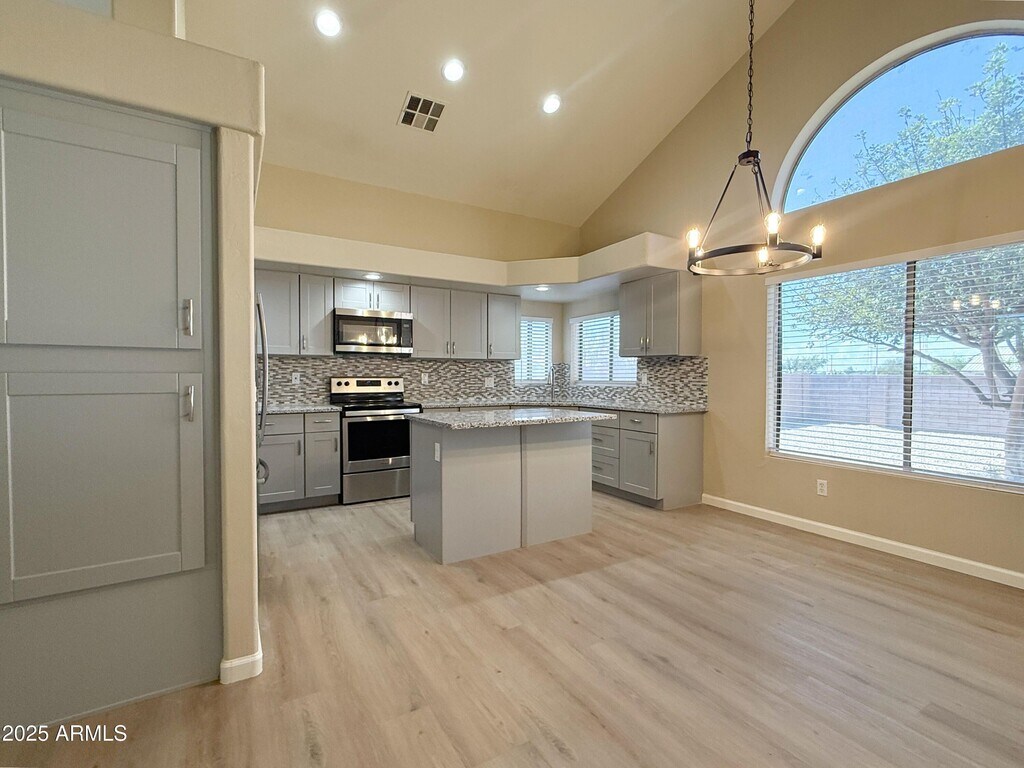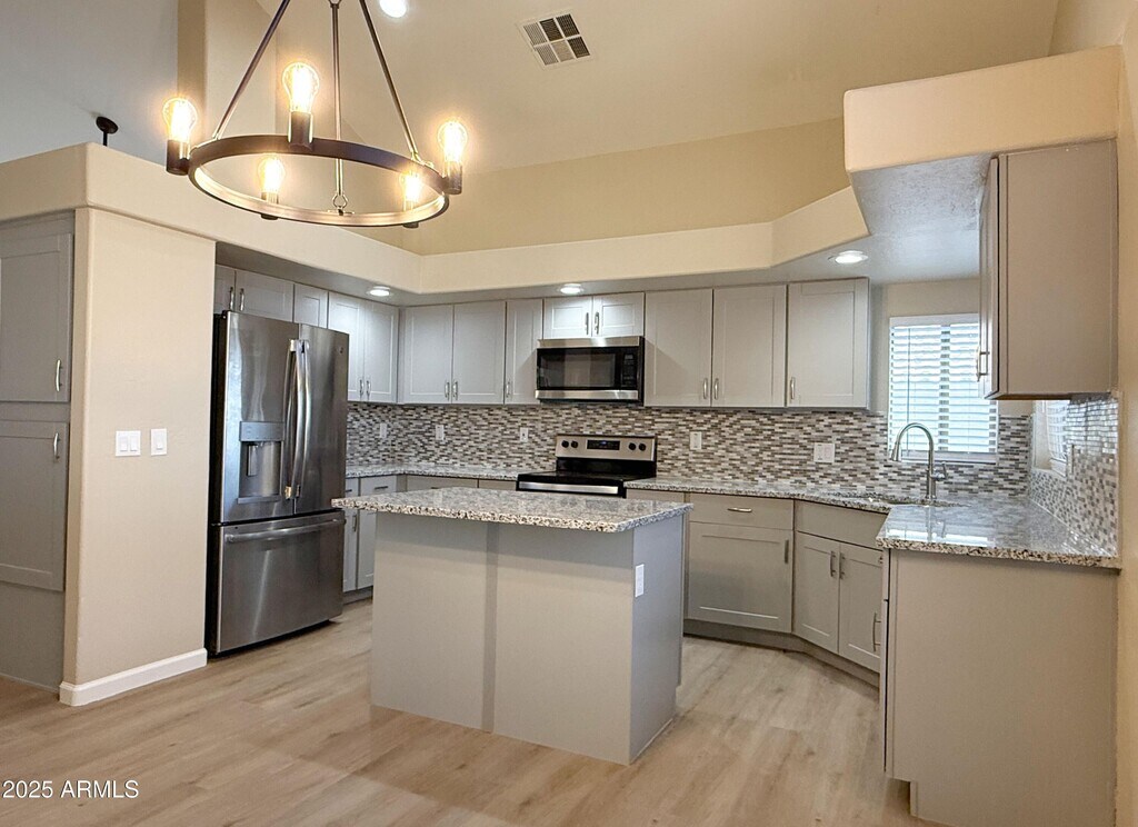 No Application Fees! Stunning and newly remodeled 4 bedroom,2.5 bathroom Glendale home located in the desirable Cobblefield community. This home features new laminate flooring throughout the first floor,soaring vaulted ceilings,two tone neutral paint,upgraded fixtures,window blinds,and abundant natural light. Multiple living spaces include a large front living room with fireplace,a spacious family room,and a formal dining area. The completely remodeled kitchen offers upgraded cabinets,granite countertops,a custom tile backsplash,island with breakfast bar,and stainless steel appliances to be included. All bedrooms are located on the second floor,including the oversized primary suite with a large walk-in closet,dual sink vanity,garden tub,and separate shower. The 3 car garage provides generous parking and storage. The easy-care backyard features a covered patio,synthetic grass area,and no neighbor behind the property for added privacy. Cobblefield is conveniently located near State Farm Stadium,Westgate Entertainment District,Desert Diamond Casino,and Tanger Outlets,offering shopping,dining,and entertainment just minutes away. Close to major roadways,including Loop 101,for quick access throughout the Valley. Property owner is an Arizona licensed real estate broker. All Denali Real Estate residents are automatically enrolled in the Resident Benefits Package (RBP) for $55.00/month which includes Renter's Liability Insurance,Credit Building to help boost the resident's credit scores with timely rent payments,up to $1M Identity Theft Protection,HVAC air filter delivery (for applicable properties),our best-in-class resident rewards program,and much more!