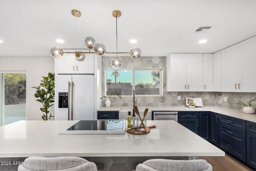 Move-in ready! Proudly presenting this impeccable 3-bed,2-bath home w/a 2-car garage,tastefully remodeled & packed w/modern upgrades designed for comfort & efficiency. Major updates include new plumbing,sewer,electrical,tankless water heater,& a 2-year-old HVAC system and much more! Sleek interior boasts new wood-look tile flooring,fresh neutral paint,stylish doors,bathrooms,& an inviting living room. Upscale eat-in kitchen features a pantry,tile backsplash,quartz counters,a center island w/breakfast bar,& matching appliances,such as a microwave,dishwasher,induction stove/oven,& a white fridge w/brass handles. Romantic main retreat is complete w/an elegant ensuite w/dual sinks. Enjoy hosting lively gatherings in the spacious backyard. Come take a look!