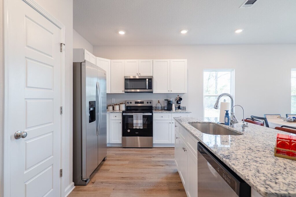Discover contemporary comfort and thoughtful design at 6412 Abney Ct in Valdosta, GA. This newly built 3-bedroom, 2.5-bathroom townhome offers 1,459 square feet of well-planned living space in the desirable Bemiss Springs community, complete with a neighborhood playground and convenient access to grocery stores, dining, and everyday essentials. From the moment you arrive, the clean lines of the vinyl siding and welcoming curb appeal set the tone. Step inside to an open-concept main level designed for both relaxation and functionality. The spacious living room features sleek LVP flooring and recessed can lighting that brightens the space while highlighting the home’s modern style. The open floor plan allows for effortless flow into the kitchen, making this level perfect for daily living and entertaining. The kitchen is a standout feature with its stainless steel appliances—including a stove, refrigerator, dishwasher, and microwave—paired with granite countertops that add a polished touch. The kitchen island with bar-top seating creates a natural gathering spot, while the pantry, generous cabinetry, and abundant counter space ensure everything has its place. Additional can lighting adds warmth and keeps the kitchen bright and inviting. Upstairs, the primary bedroom offers a comfortable retreat with soft carpet underfoot and enough space to accommodate a king-size bed with ease. The walk-in closet provides excellent storage. The primary bathroom continues the home’s upscale feel with a walk-in shower, a double vanity topped with granite, and built-in shelving that keeps everyday essentials neatly stored. Two guest bedrooms—both carpeted—provide comfortable secondary spaces, perfect for additional occupants, guests, or flexible-use rooms. The upstairs guest bathroom features LVP flooring, a convenient tub/shower combo, and a granite countertop for a cohesive look throughout the home. A dedicated laundry area includes electric washer and dryer hookups and adds everyday practicality to the home. Additional features include a 1-car garage for parking or storage and the benefits of being part of a newer, well-planned community. Pets are welcome, making this home suitable for a variety of lifestyles. This beautifully finished townhouse offers fresh construction, upgraded features, and an efficient layout—all in a growing neighborhood with community amenities. It’s a wonderful place to enjoy modern living in Valdosta. Available to Move-In 01/07/2026 Check out key at our office on or After 01/02/2025 Mon-Thu:9am-4pm, Fri:9am-3pm w/$20 deposit required, returned when the key is returned & must provide a valid driver's license/i.d. and phone number. Apply Online today!