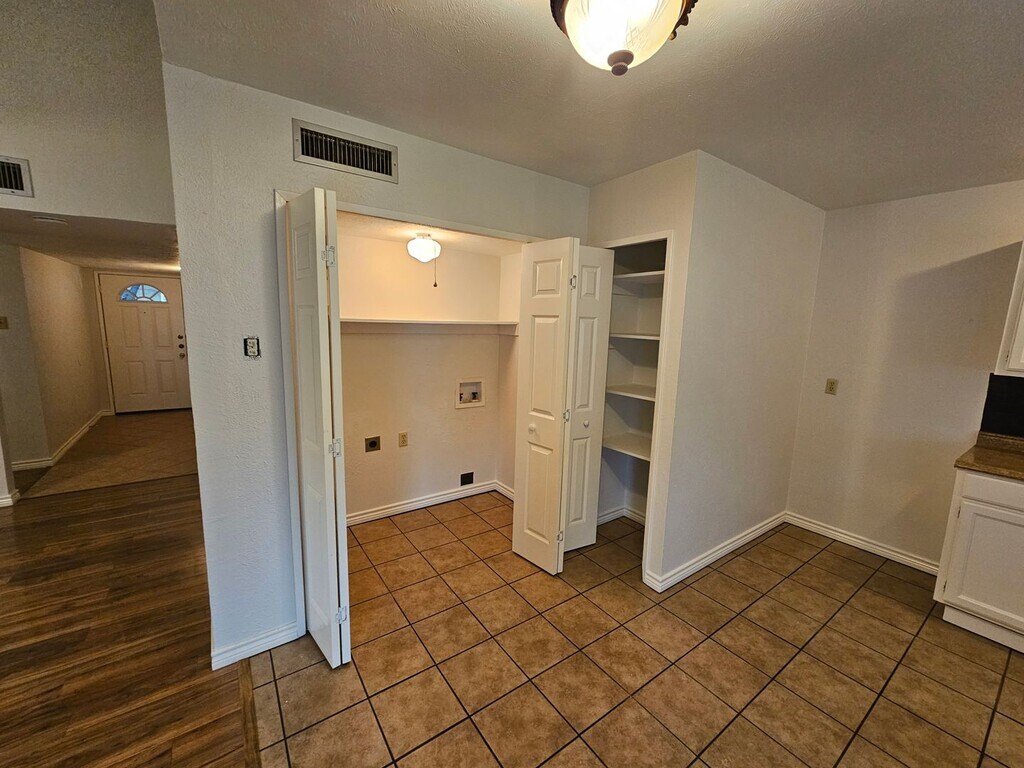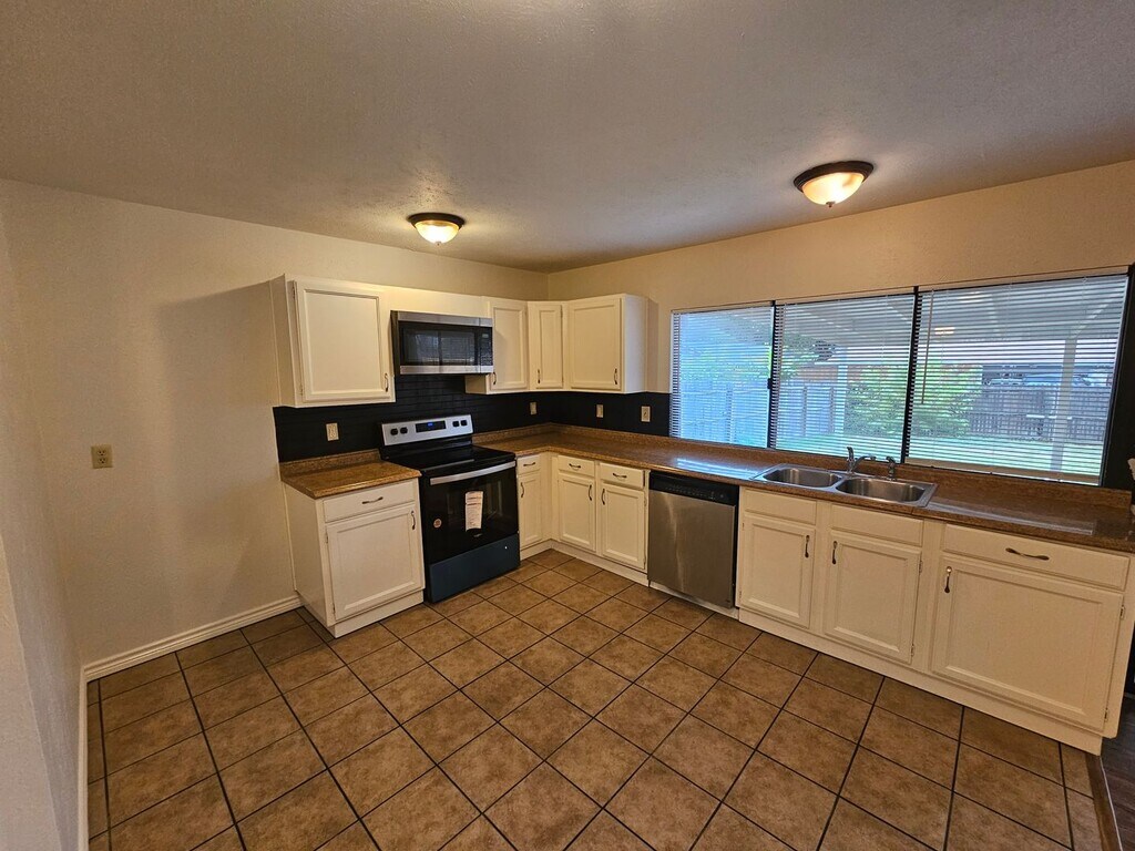 3 bedroom, 2 bathroom, no carpet, kitchen open to livingroom. Includes new electric stove range, fresh paint, fenced backyard with covered patio & full-size washer/ dryer hook-ups. *tenant responsible for refrigerator