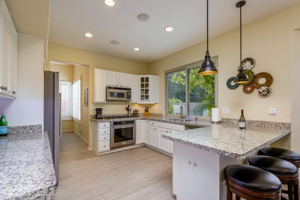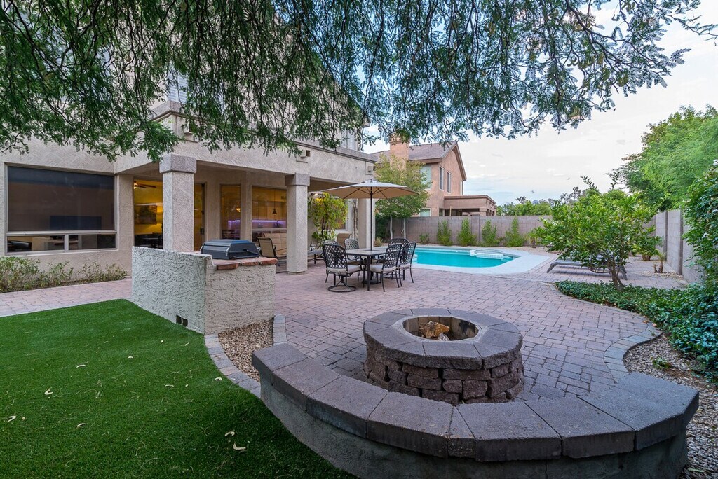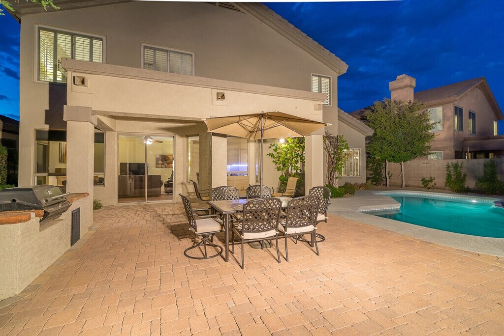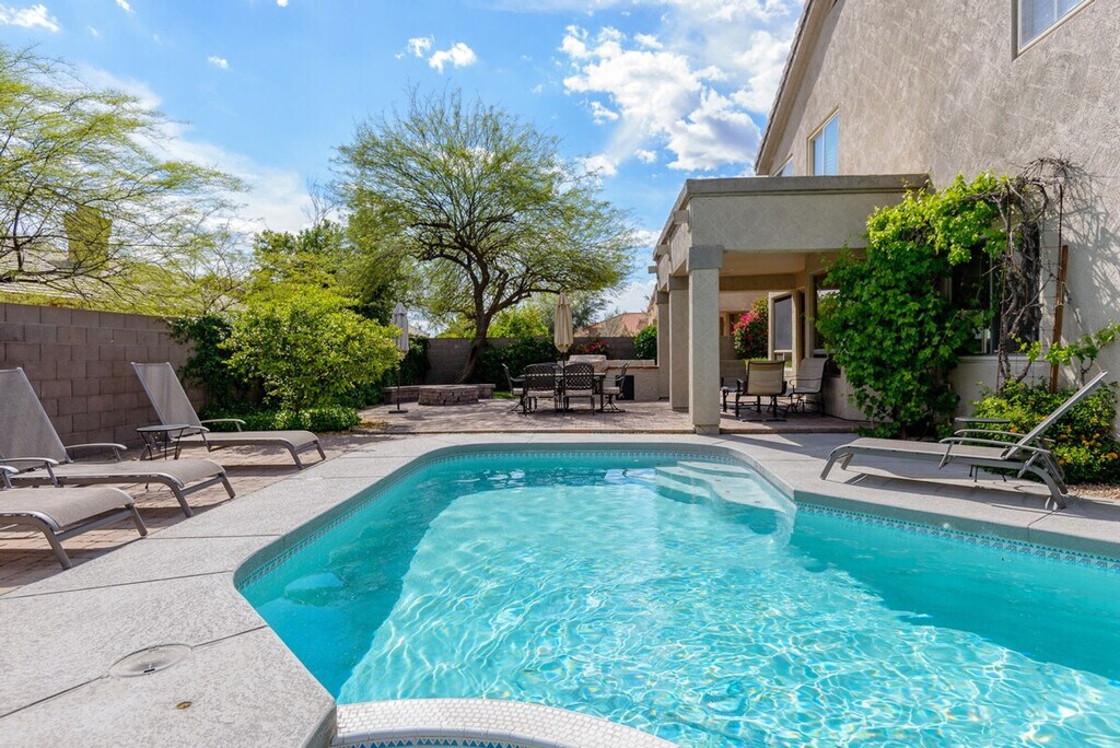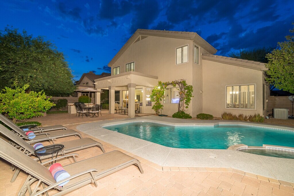 Feel at home in this 2-story home located in sought after Kierland. This property features 5 bedrooms and 3 full baths. This home offers a Queen bedroom and full bath on the 1st level. All linens, bath, and pool towels are provided, along with free Wi-Fi. Enjoy the south-facing backyard with a heated pool and spa, built-in BBQ, and wood-burning outdoor fire pit. Pool heating is available for $350 per week ($1250 per month) to heat the pool to 85 degrees in the winter, upon request only. Pets are allowed with approval, and a pet fee will be added to your booking. This home is within walking distance of Kierland Commons, Scottsdale Quarter, golf, spa, shopping, dining, nightlife, and movies. Guests are liable for any damages caused to the property. There is a $400 per month electric cap, and guests are liable for any overages. [SI]