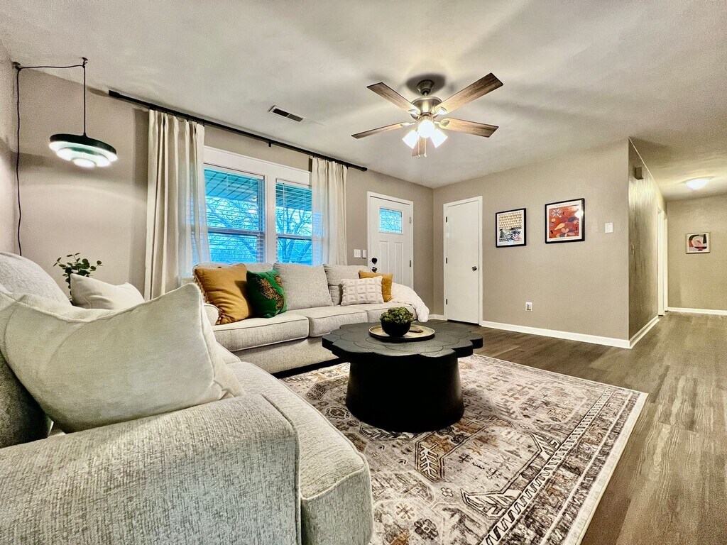 All-inclusive completely furnished rental in the heart of liberty township. Near the highway, shopping, and dining. Great for Long or short stays! Our unique home is located in a very safe and desirable suburb of Cincinnati and is conveniently located right off Interstate 75. Downtown Cincinnati is only a 30-minute drive and Downtown Dayton is 35 minutes away. A blend of comfort, style, and convenience greets you as soon as you enter our ranch home. While decorating this inviting retreat, we have worked hard to create a home away from home feeling for our guests. The Inviting floor plan in the living space allows room for many guests. Everyone in your group will have room to mingle and relax. The living area is the home's heartbeat, successfully combining the relaxing living room with a comfortable dining area and a fully equipped kitchen. Large windows allow plenty of natural light to illuminate the space throughout the day. The hard flooring, and tasteful décor create a feeling of warmth and coziness. Three comfortable bedrooms are designed to offer all the rest you need after a long day of exploring the exciting city of Trenton. The home offers relaxation and comfort, and we can't wait for you to experience it for yourself. ? LIVING ROOMS ? The living room is a part of the contemporary floor plan. See what the chef is up to, help them set the table, or unwind on the cozy sofa with a good book. ? Two Comfortable designer sofas ? One 65 Inch Smart TV ? Coffee Tables ? Reading Lamps ? KITCHEN & DINING ? Even the most demanding chefs would enjoy preparing delicious meals using numerous state-of-the-art cooking appliances. In addition, spacious countertops provide plenty of workspaces for you to prepare delicious homemade delicacies. ? Microwave ? Stove ? Oven ? Toaster ? Refrigerator/Freezer ? Keurig Coffee Maker ? Dishwasher ? Sink - Hot & Cold Water ? Trays ? Glasses ? Silverware ? Pots & Pans Serve those delicious meals on the adjacent dining table and let the smell of freshly cooked homemade delicacies invite everyone over for a tasty feast. If you don't feel like cooking, you can always check out one of the many nearby restaurants in the area. ? Dining Table with Seating for 4 ? SLEEPING ARRANGEMENTS - 3 BEDROOMS ? Three tastefully furnished bedrooms are designed to provide hotel-like comfort and convenience needed to relax and rest so you can remain energized and do everything you have planned the next day. ? Master Bedroom: King-Size Bed ? Bedroom 2: Queen-Size Bed ? Bedroom 3: Twin over Full Bunk Bed All bedrooms are equipped with a similar set of amenities. ? Premium Pillows, Linens, and Sheets ? Closets with Hangers and Shelves ? Dressers with Spacious Drawers ? Night Stands with Reading Lights ? 32 to 55-inch Smart TV in all bedrooms ? BATHROOMS ? A full bathroom caters to efficiently accommodate all bedrooms. ? Bathtub with a Shower ? Vanity ? Mirror ? Toilet ? Towels ? Hair Dryer ? Essential Toiletries Let us know if you have any questions regarding this beautiful home. We are more than happy to assist! ________ We use the August Home application, which means there are no keys to lose! Simply, download the august home app and your key will be visible once your booking begins. When you arrive you may park in the large driveway. The entire home is exclusively yours without interruption during your stay, so relax, unwind, and make yourself at home. Other than the already mentioned amenities, the house also features: ? High-Speed Wi-Fi ? Central Air Conditioning ? Central Heating ? Washer/Dryer ? Iron/Board ? Free Parking ? Towels and Basic Consumable Toiletries We are just minutes away, but always respect your privacy. You may contact us through the app and we will answer you quickly. If for any reason we find the need to visit, we will alert you! ? ADDITIONAL ACCOMMODATION ? Traveling in a larger group, or your preferred dates are already taken? You'll be happy to know that we offer additional accommodation in the area. Please browse our host profile for the complete list of Homes. ? COVID-19 SANITIZATION ? The health, safety, and well-being of our guests are of utmost importance. For this reason, we use a thorough cleaning process after each check-out. ? NO SMOKING INSIDE ? Please refrain from smoking inside the home! Any smoking evidence will result in a fee for odor removal and furniture cleaning. ? NO PARTIES/EVENTS ? We kindly ask you to treat our home as your own to preserve its pristine condition for future guests and your return visits.
