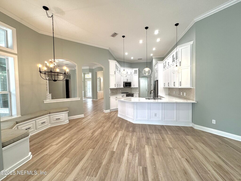 Amazing family home in Nocatee with over 3,300 sq ft of living space! This spacious 4-bed,3.5-bath home features a formal living room,dining room,eat-in kitchen,family room,and a dedicated office. The luxurious primary suite includes a renovated bath with a soaking tub and walk-in shower. The second and third bedrooms share a Jack and Jill bathroom. Enjoy outdoor living with an oversized caged lanai,summer kitchen,and firepitperfect for entertaining. Additional features include a 3-car garage and water softener. Located in one of Northeast Florida's top communities,Nocatee offers unmatched amenities: splash park,water slide,lazy river,resort-style pools,playgrounds,and miles of scenic trails for walking,biking,or running. Just 15 minutes from the beach,this home offers the perfect blend of convenience and lifestyle. Don't miss this opportunity to live in one of the area's most desirable neighborhoods! Application is $75 per person 18 and over. Processing fee of $125. MLS# 2108632