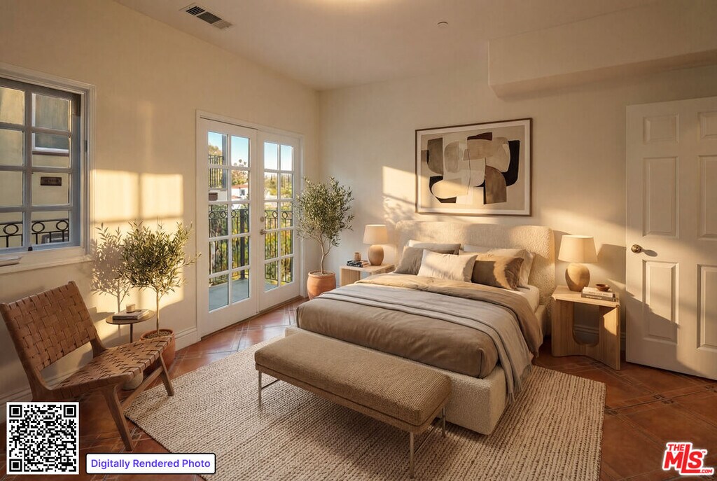 Welcome to a modern, Mediterranean style escape in the heart of the Hollywood Hills. The property is wonderfully complemented by city lights and verdant views out every window. Enter through the main level into a lovely foyer which leads to the living room, dining room, and kitchen, each adorned with architectural details including stylistic archways and vibrant tiles. Descend to the middle level where you'll find the primary retreat, complete with sitting room, walk-in closet, and private terrace. Two additional bedrooms are also located on this floor, each with their own terrace, and a jack-and-jill bathroom between. On the lowest level is the family room, a large deck, a wraparound covered terrace, and the fourth bedroom. Stairs connect the outdoor areas on the lowest and middle floors. The home is complete with a two-car garage and driveway, surrounded by lush landscaping. It can also be accessed from Bryn Mawr Dr, with stairs leading up to the home from the street. MLS# 26673579