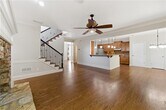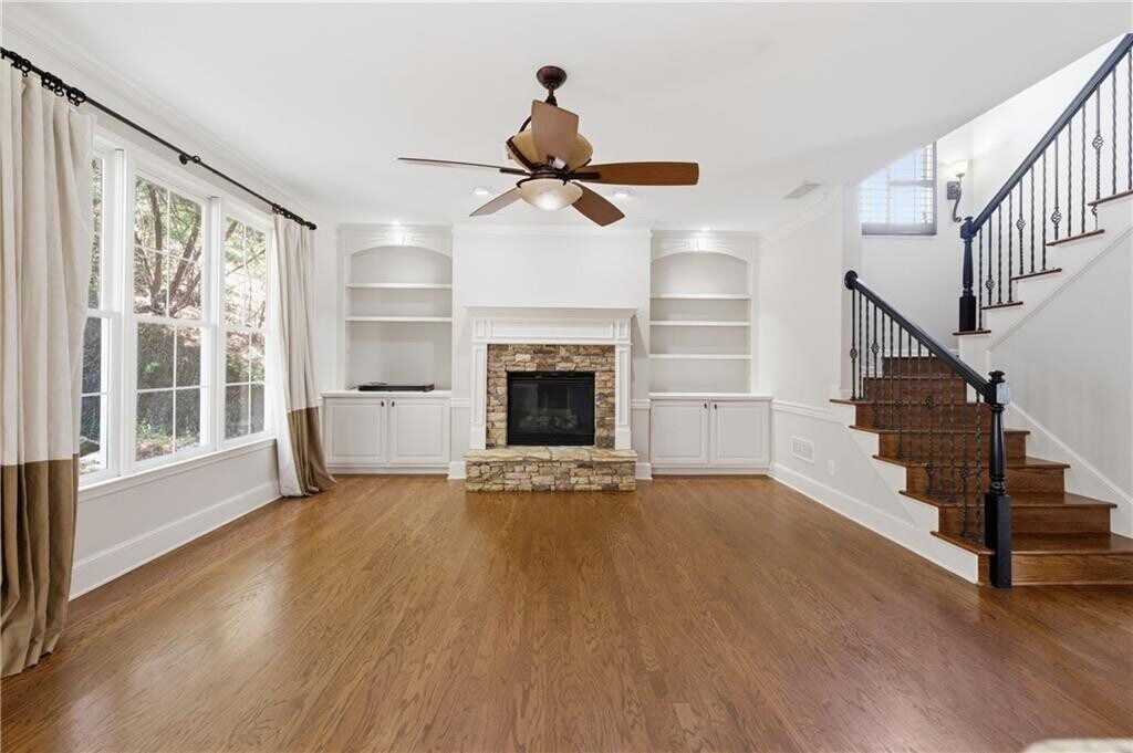 Welcome to this spacious and well-maintained 4-bedroom,2.5-bathroom Craftsman home with 2-car garage,located in the highly desirable,gated Providence community. Enjoy resort-style amenities including two pools,tennis courts,clubhouse/fitness center,dog park,and scenic nature trail. This home features fresh paint and hardwood floors throughout,creating a clean,cohesive feel across both levels. The open-concept kitchen offers ample counter space,modern appliances,breakfast area,and a seamless view into the cozy family room w/ gas fireplace —perfect for everyday living and entertaining. The main level also features a large dining room that seats 12+ as well as a formal living room. Upstairs,you’ll find all 4 bedrooms,including a spacious primary suite designed for comfort and privacy. Step outside to enjoy double-level rocking chair front porches and a serene,private backyard,ideal for relaxing or hosting guests. Conveniently located near Whitefield Academy,I-285 and I-20,this home offers an easy commute to Smyrna/Vinings,Truist Park/The Battery,downtown & midtown Atlanta,and the airport. Washer/dryer,and landscaping are included. Pets are welcome with a $500 non-refundable deposit. Security deposit is $3,400. Available for immediate move-in! MLS ID 7750792