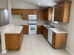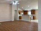 his home features an open-concept layout with a spacious living room that flows seamlessly into the kitchen—perfect for entertaining. The kitchen has natural light, a breakfast bar, and an adjacent dining area. Split-bedroom floor plan offers privacy, with three guest bedrooms sharing a full bath and convenient access to the laundry room—The primary suite enjoys beautiful natural light and backyard views, complete with a walk in closet and an oversized walk-in shower. Enjoy outdoor living with a large covered patio and large shade trees. Enjoy the sparkling community pool, park and playground!