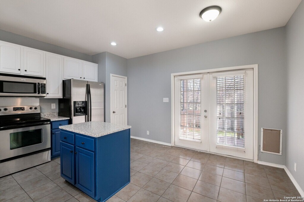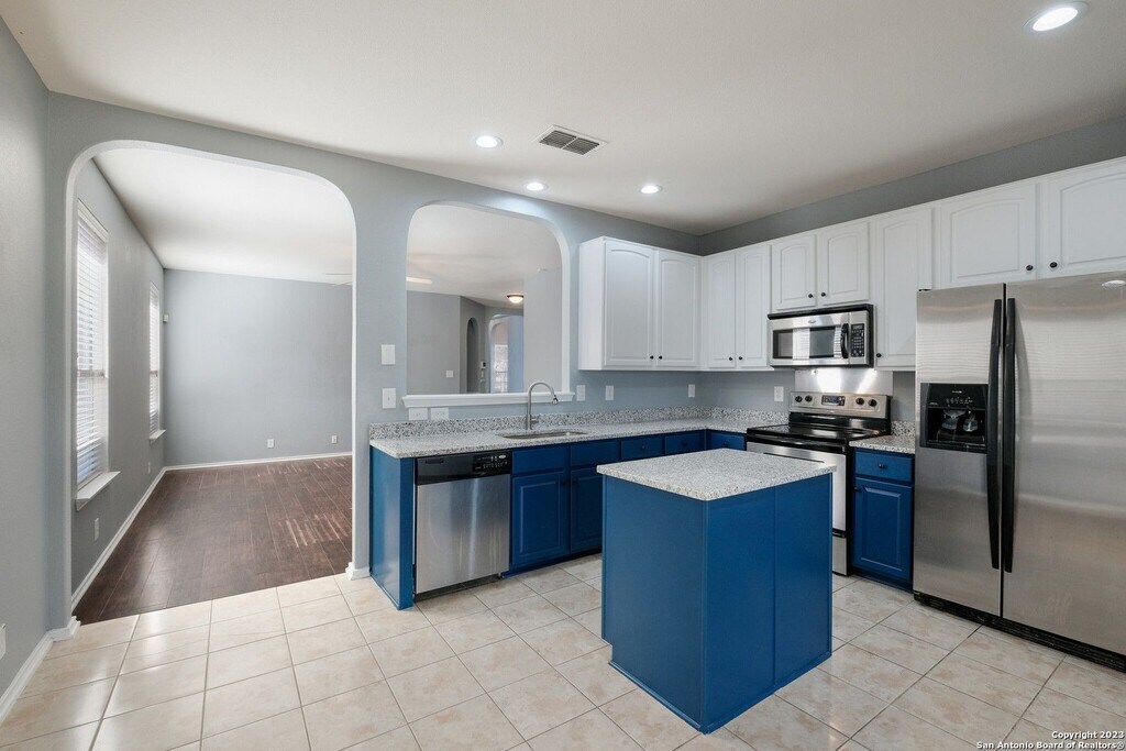 Oldham property description: Rare single-story opportunity in highly desirable Alamo Ranch! This is the lowest-priced home available and move-in ready. Stunning curb appeal leads to a dramatic entry hall and an open-concept floor plan featuring stylish, updated kitchen with island, solid countertops, and stainless steel appliances. A versatile study can easily function as a nursery, media room, or fourth bedroom. Home includes a covered patio, recessed lighting, ceiling fans in all rooms, and front/rear gutters. Plumbed for water softener. Zoned to award-winning Northside ISD near top-tier shopping, dining, and growth. Schedule your showing now!