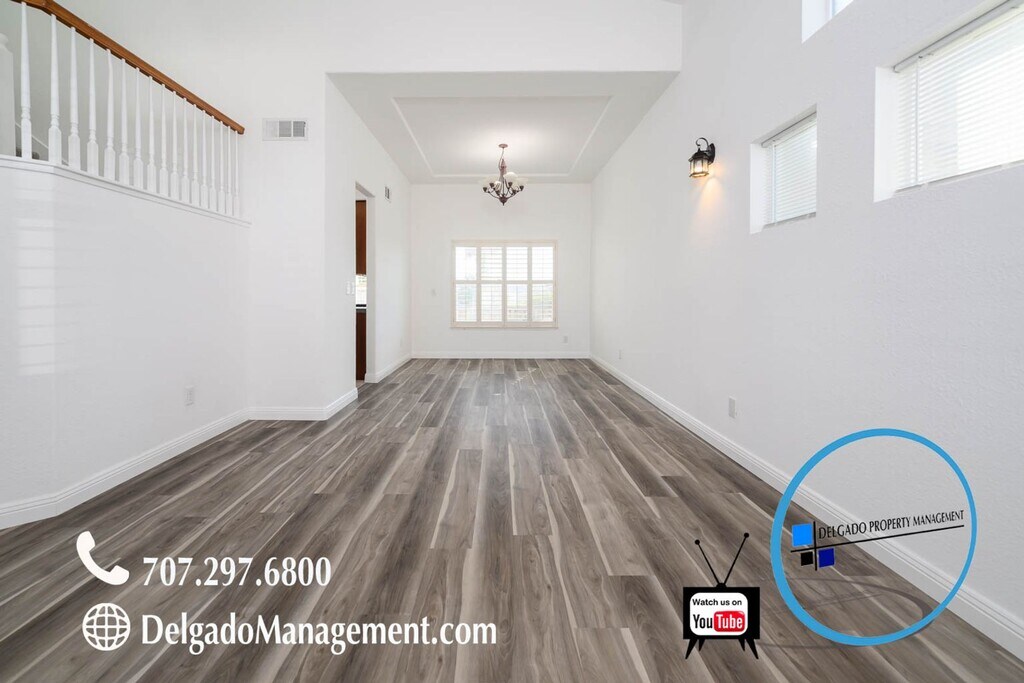This is a large recently upgraded home with lots of well thought out features including top of the line appliances, lots of counter space, cabinet space, large family room adjacent to the kitchen, plenty of closet space, large spa-like bathroom, formal living room, beautiful hardwood style floors downstairs and plush carpet upstairs. Three car garage, beautiful backyard sun room perfect for entertaining. Located near premium shopping, parks, schools and minutes from Blue Rock Golf Course. Only 45 minutes from both Sacramento and San Francisco. This is not your typical home so if you are looking for a unique home to call your own, don't wait and miss out on this beautiful home....call now to set up your private viewing. - Lease Duration 12 months - Must make 3 times the rent as income - $40 Application fee per adult - 2 Years of employment and rental history - Must carry renters insurance throughout tenancy - 650 or above credit score is required - Please submit your applications through Delgado Property Management website - We do not accept Zillow rental applications or any third party applications. - We reserve the right to correct mistakes in advertising.