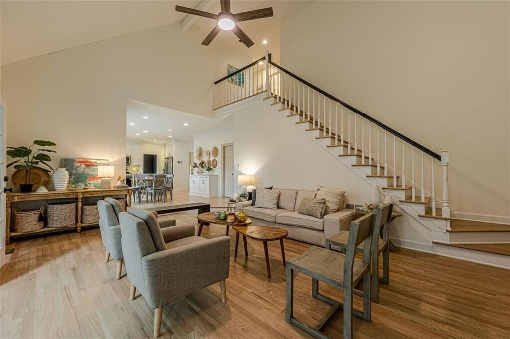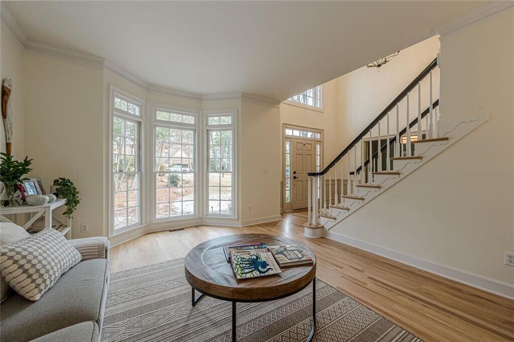 Meticulously maintained home that’s has been totally updated and ready for you to just pack your bags and move in! Great school district and quick access to Lake Windward Elementary school and near Georgia’s top schools,parks,the Golf Club of Georgia,GA 400,Windward Pkwy,Avalon,Halcyon and Downtown Alpharetta. Exceptional neighborhood in Southpointe subdivision at Lake Windward in Alpharetta. This home offer has 7 bedrooms & 4 full baths and a spacious fully finished basement. This home is in great condition: new paints,new floorings,renovated kitchen & bathrooms,new light-stained hardwoods,new chandelier and herringbone carpet stair runner. Very nice color-drenched office or main floor bedroom with access to a full bath. Spacious Living Room & Dinning Room. Upstairs,all 4 bedrooms feature new hardwood flooring,lighting and plumbing fixtures. The primary suite includes a long walk-in closet,a vaulted ceiling bathroom with linen-like ceramic floor tile,a large jetted tub and a big shower with a new glass enclosure. This home ensures clean air with professionally cleaned air ducts and HVAC systems. Beautifully upgrade backyard with 0.5 acre. MLS ID 7713651