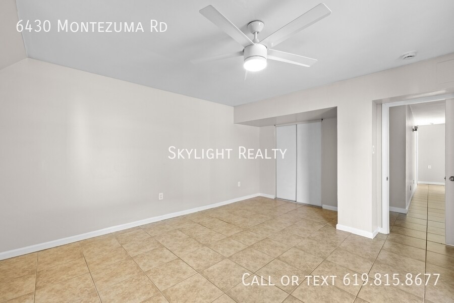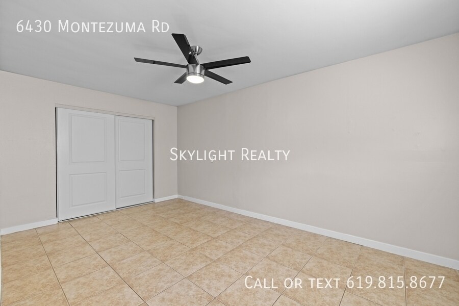 Now Leasing for 2026! Spacious 7-9 Bed Remodeled Home at 6430 Montezuma Road – Walking Distance to SDSU! Check out the full Virtual Tour: To book a tour, please call Property Features: -2 LARGE BEDROOMS CAN DOUBLE -(sleeps 7-9 comfortably) -4 driveway parking spots -Newly Remodeled! -In unit Washer/Dryer -Dishwasher -Walking distance to SDSU -No pets allowed. Service animals and ESA's exempt **There will be construction happening in the backyard during the lease. Tenants will receive a 25% discount during the construction period. Construction may last anywhere from 3-12 months. Lease Terms: -12-month lease period -Tenants set up and pay for their own electricity, gas, water/sewer, and Wi-Fi. -$43.60/month per household fee for trash. APPLICATION PROCESS: 1. All tenants (and co-signers, if applicable) must complete an application. 2. Once approved, a $1,500 initial holding deposit is due to reserve the unit and begin lease preparation. 3. The remainder of the security deposit must be submitted within 1 week or by the due date listed on the lease agreement. 4. Applicants must show a minimum monthly income of 2.5x the rent and a credit score of 650 or higher. Guarantors/co-signers are accepted. Follow Us: Stay updated with more listings by following us on Instagram: @aztec.living Listed by Skylight Realty DRE# 02222135 Single family home near SDSU