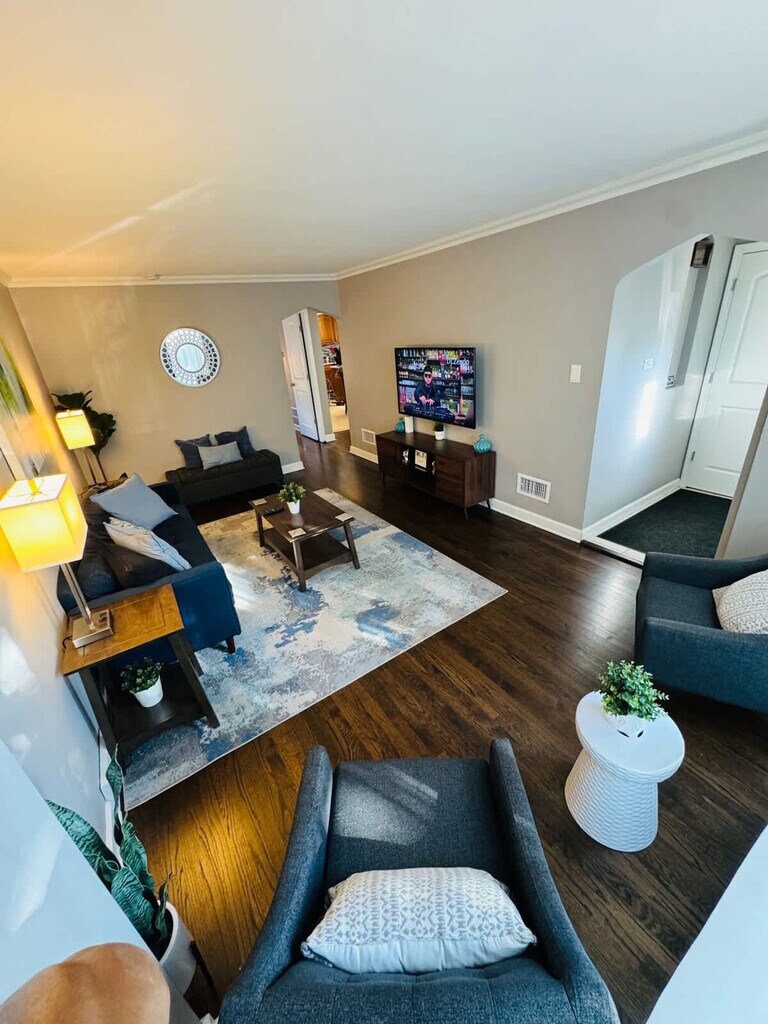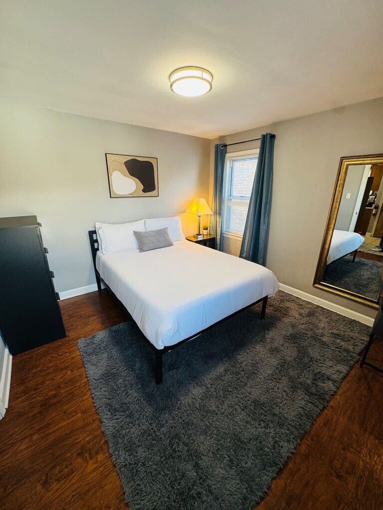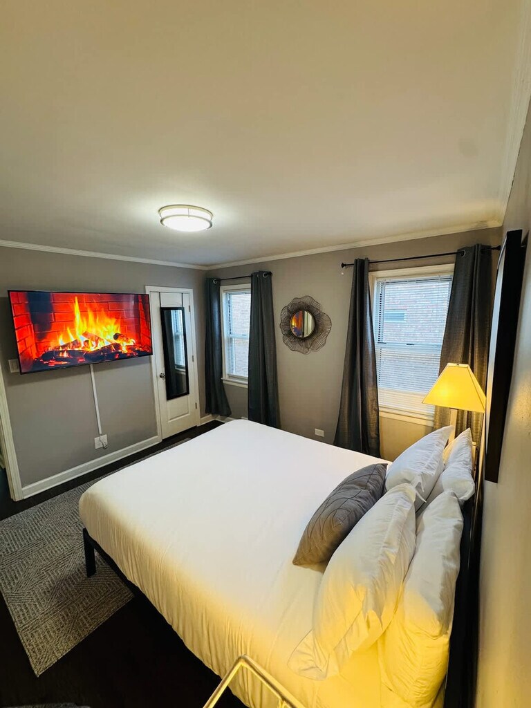 Discover a cozy Chicago retreat and feel at home in this charming single-level house, ideal for families and small groups. Featuring three bedrooms and one full bathroom, it's designed for a relaxing stay. The living area is bright and inviting, with cozy seating. The fully equipped kitchen includes essential cookware, dishes, and appliances. Each sleeping area is thoughtfully designed with fresh linens, pillows, and storage. Additional amenities such as high-speed Wi-Fi, a smart TV, and climate control ensure a smooth and stress-free experience. Convenient self check-in is available. This home is located in a convenient and residential Chicago neighborhood just minutes from Midway International Airport. The area offers a relaxed, local feel with easy access to restaurants, coffee shops, grocery stores, and everyday essentials. Guests will appreciate the quiet streets while still being close to major roads and public transportation, making it easy to get around the city. It is conveniently located near Giordano's, with easy access to public transport and downtown Chicago. Check-in time is 4:00 PM, and check-out time is 11:00 AM. We have cameras outside of the home for your safety, and they will be recording during the reservations. Tampering with these will result in a fine. [SI]