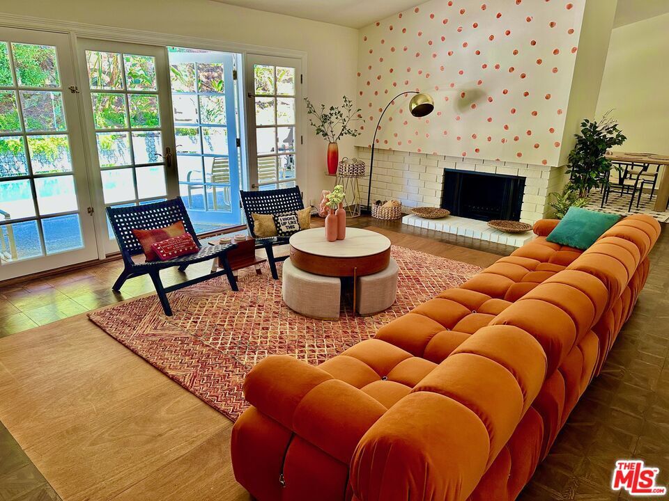 Available Medium Term 6 months+ to Long Term 1 year+. Fully Furnished & Fully Equipped. 4 Bedrooms furnished with 6 Queen Beds. Summer by the lake anyone? Enjoy that feeling all year long here at this fantastic home 150 yards from Lake Hollywood! Resort living awaits you above it all in the Hollywood Hills, just below the Hollywood Sign and only a stones throw from the Lake and the 3.5-mile hiking circuit that surrounds it. Sited on almost 1/2 acre, the property features a sparkling, totally private pool & spa as well as an enormous attached office or studio space with vaulted wood ceiling and its own separate entrance, teasing all manner of ideas for creative use. The huge & sunny kitchen overlooks a tranquil meditation and herb garden and features, a breakfast bar, large eat-in area and new appliances. The primary bedroom opens through french doors directly out to the pool and includes an oversized walk-in closet. An en-suite bath with floor-to-ceiling windows looks out to a completely private garden area and features a double vanity and glass shower stall with handheld & rainfall shower heads. The living room and dining room feature wood flooring, share a dual-sided fireplace, and both open out to the lush pool area for maximum enjoyment of SoCal indoor-outdoor living. Fresh paint, brand new carpeting, central heat and A/C, washer/dryer. Away from it all, but with easy access to the Studios, Hollywood, the 101, the 134, and the 5 freeways. MLS# 25507625