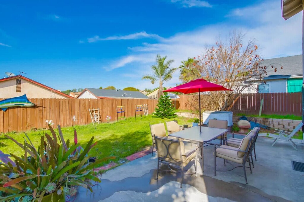 The advertised rate of $8,673/month is the lowest available price, based on a 30 day(s) stay with a move-in date of October 19, 2026. Rates vary depending on the duration of stay, season, and other parameters. For exact pricing and additional pricing components, please visit our website and enter your desired move-in and move-out dates. The rate is applicable when billed upfront; it can be higher if billed in multiple payments. Welcome to this 4-bedroom home in San Diego, offering 1,634 Sqft of living space. Feel at home in this peaceful oasis, perfect for both short-term and long-term stays. The kitchen is fully equipped with a gas stove/oven, blender, toaster, cooking pans, baking trays, coffee, oil, sugar, salt, a coffee machine, microwave, and fridge. The living area is air-conditioned and features flat-screen smart TVs with cable and Roku for Netflix, YouTube, and Disney+. A game console is also available. The bathrooms are fully stocked with shampoo, body wash, a hairdryer, and fresh towels, including one walk-in bathroom. Garage parking is available for two cars, and driveway parking is available for at least 4 cars. Pets are welcome with a fee of $25 per pet per night. Located in a serene neighborhood, this home is minutes away from the Walmart Shopping Center and a variety of dining options, including Mexican, Chinese, Filipino, Japanese, and Korean restaurants. It is also a gateway to San Diego’s iconic attractions, such as Balboa Park, Old Town San Diego State Historic Park, the USS Midway Museum, Cabrillo National Monument, the Gaslamp Quarter, Seaport Village, Coronado Beach, Petco Park, and Mission Trails Regional Park. Public transportation is easily accessible, with the nearest bus stop within walking distance. Quiet hours are between 9 PM and 8 AM. Excessive noise may lead to neighbor complaints or visits from local authorities, and a $1,000 violation fee may apply. Only guests and pets counted on the reservation are allowed on the property. Each unauthorized guest or pet may incur a $100 per person/pet per day/night fee. Tampering or disconnecting security cameras or noise monitors will result in a $1000 fine. Includes reliable 500 Mbps Wi-Fi, a workspace in the master bedroom, and a workspace in bedroom 2. [SI]
