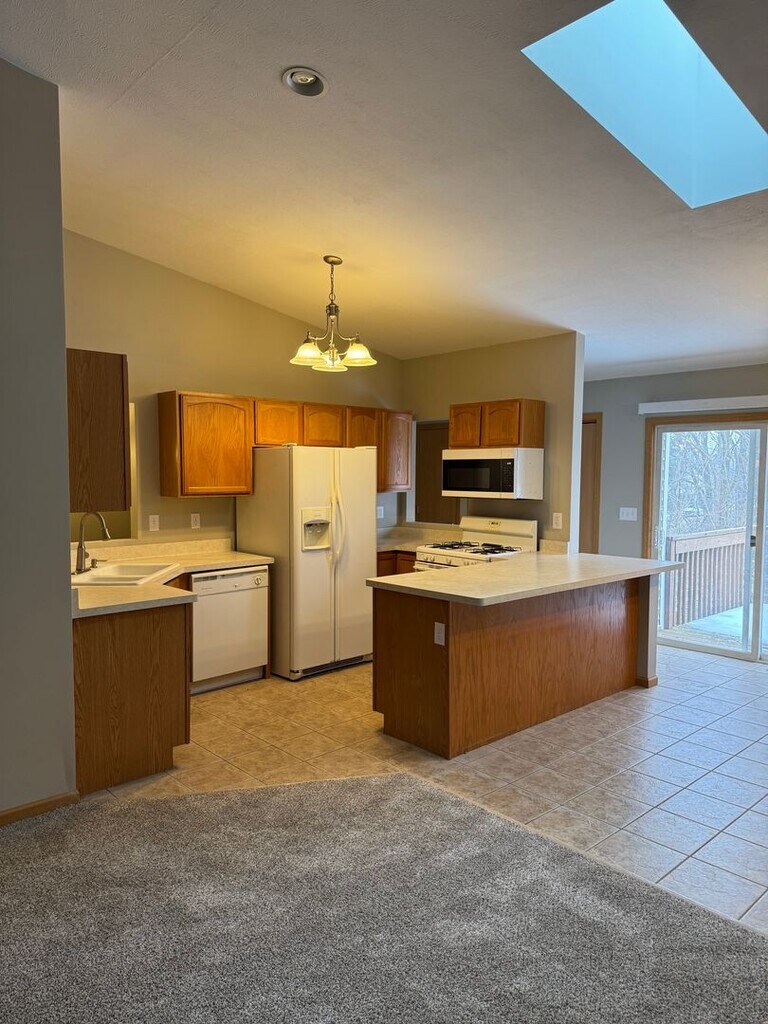 Welcome home to this spacious 1,456 sq. ft. townhouse-style condo offering the perfect blend of comfort, convenience, and modern style. Step inside to an inviting open-concept main living area featuring vaulted ceilings, a cozy gas fireplace, and sliding glass doors leading to your private upper-level deck — the ideal place to relax, entertain, or enjoy a quiet evening. The kitchen flows effortlessly into the dining and living spaces, creating a warm and connected atmosphere. The generous primary suite offers a walk-in closet and easy access to a full bath, while the main-level second bedroom opens through sliding glass doors to a private patio, perfect for morning coffee or evening unwinding. A second full bath adds flexibility for guests, a home office, or hobbies. Enjoy the ease of low-maintenance living with a 2-car attached garage, in-unit laundry, and an HOA that covers lawn care and snow removal. Nestled just off Perryville Road, you’ll love being close to shopping, dining, and highway access — everything you need is just minutes away!