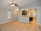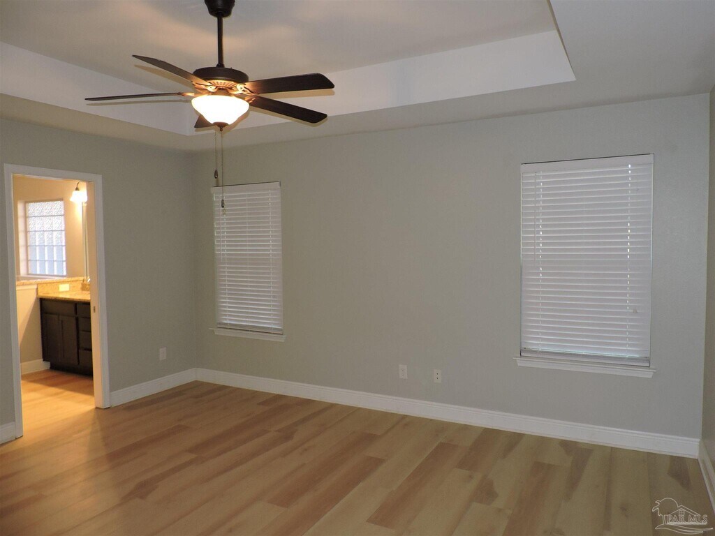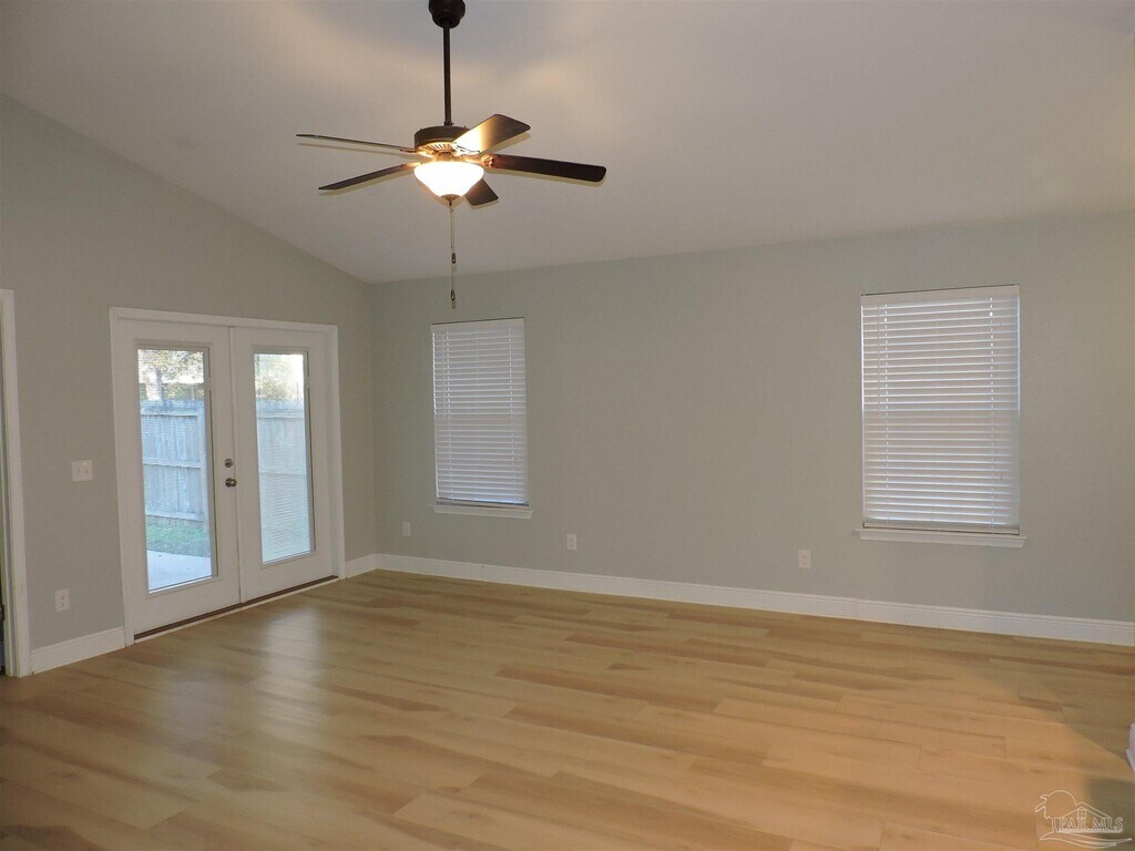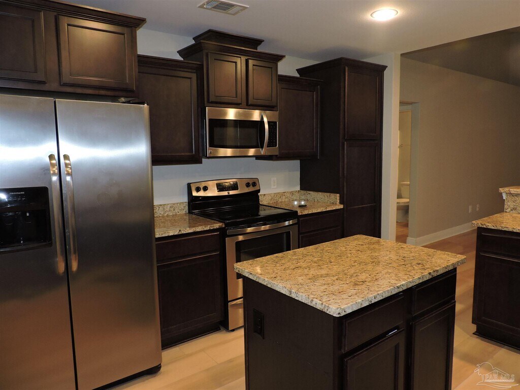 Easy access to shopping,I-10 & Navy Federal complex! Wood-look vinyl plank flooring throughout. Great room with cathedral ceiling,ceiling fan & plant ledges . Kitchen/dining combination plus breakfast bar. Fully equipped kitchen with granite countertops,island & stainless steel appliances. Split floor plan. Main suite has ceiling fan,oversized closet,granite countertops,double vanity,garden tub & separate shower.. Inside laundry. Covered back porch. No smokers. Pets considered with owner approval.