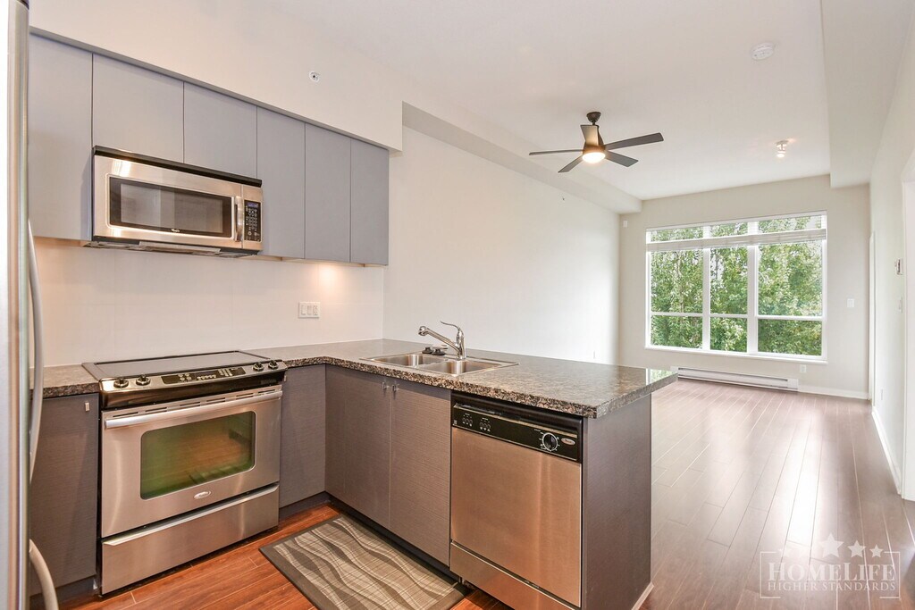 Luxury/Modern/Executive - Top Floor 1 Bed, 1 Bath Condo for Rent in Cloverdale/East Clayton! Welcome to Waterstone, a vibrant community nestled in the heart of the Cloverdale/East Clayton area of Surrey. This exceptional development offers the perfect blend of urban convenience and peaceful natural surroundings. Enjoy the tranquility of nearby parks and walking trails, while remaining just moments away from major thoroughfares like Fraser Highway and Highway 10, making your commute a breeze. The neighbourhood boasts excellent local amenities, including a variety of shopping options at Willowbrook Shopping Centre, a wide selection of restaurants, and quick access to top-rated schools like Lord Tweedsmuir Secondary. The property itself is part of a master-planned community designed for an active and social lifestyle.Highly sought-after community with a blend of modern living and natural space.Close proximity to the shops and dining of Cloverdale and Clayton Heights.Excellent transit connections and easy access to major highways.Multiple bus routes nearby connecting to Willowbrook and Langley Centre.Walking distance to elementary schools and a short drive to secondary schools.Minutes from grocery stores, local cafes, and diverse dining establishments.Backs onto beautiful green space and walking trails, including the nearby Clayton Dog Park.The building's amenities redefine condo living, offering an unparalleled lifestyle:Fitness Centre: A fully-equipped, modern gym to maintain your active lifestyle.Pool and Hot Tub: Relax and unwind in the outdoor pool and hot tub area.Sauna and Steam Room: Unwind and detoxify in the building's private sauna and steam room.Theatre Room: Enjoy movie night in the private, dedicated theatre room.Game Room: A dedicated space for socializing and entertainment.Lounge/Party Room: A beautifully designed space, perfect for hosting gatherings and events.Guest Suites: Convenient suites available for overnight visitors.Car Wash Area: Dedicated, convenient space for cleaning your vehicle. This bright and spacious top floor 1 bedroom, 1 bathroom condo unit spans approximately 592 sqft and is designed for comfortable, modern living. The open-concept layout maximizes space and features high-end finishes throughout. The gourmet kitchen is equipped with a large granite island and a full suite of stainless steel appliances, making it perfect for both daily living and entertaining. The primary bedroom is a peaceful retreat with a generous walk-in closet. The unit also includes in-suite laundry and a private balcony to enjoy the fresh air. Please Note:1 Year Lease Term2M Renters Insurance RequiredNo SmokingCredit Check & Income Verification Required