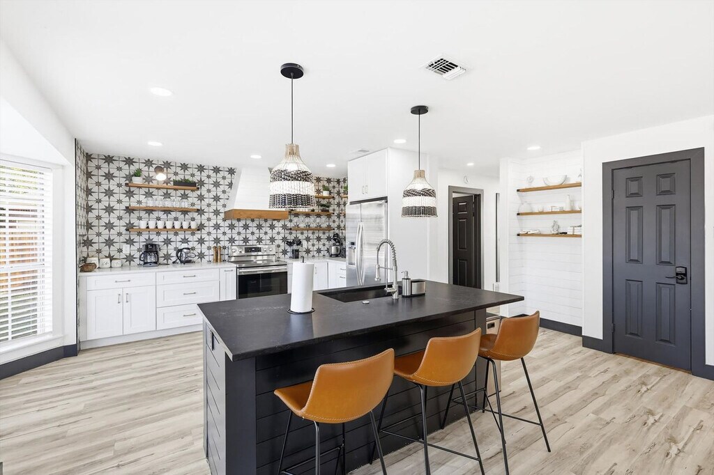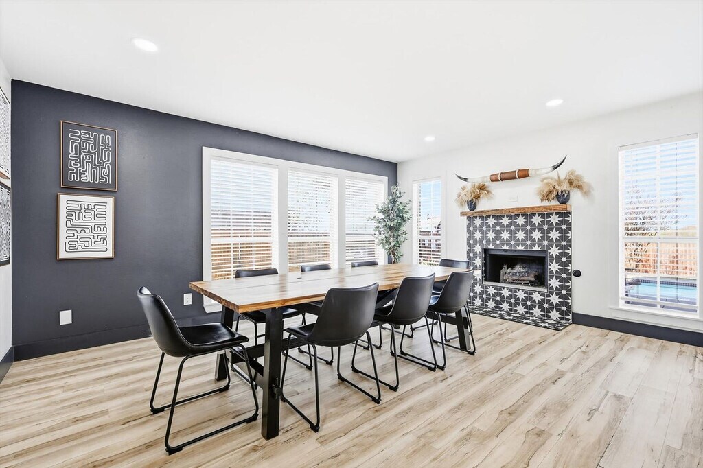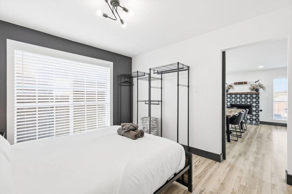 Feel at home in this sprawling vacation estate, featuring 5 bedrooms and 2.5 bathrooms, designed with luxurious modern vibes throughout. This home features a fully equipped chef’s kitchen with stainless steel appliances and sleek quartz countertops. The spacious living room offers comfortable couches, a flat-screen TV, and high-speed Wi-Fi. The dining area features a kitchen island breakfast bar and a dinner table with a view of the backyard pool. All 5 bedrooms are furnished with fluffy pillows, crisp linens, and plush mattresses. Enjoy the private backyard oasis with an outdoor swimming pool, poolside loungers, a BBQ grill, a playground, a fire pit, and picnic benches. Complimentary use of the washer and dryer is included. Free parking is available. Experience the best of Dallas! From museums and performing arts venues in the Arts District to the nightlife of live music and bars, there’s something for everyone. Nearby attractions include the Dallas Museum of Art, the Dallas World of Aquarium, the Dallas Arboretum Botanical Gardens, and White Rock Lake Park. Smoking of any type is not allowed, and violations are subject to a $450 fine plus the cost to clean, deodorize, and repair damages. Only registered guests are allowed on the property. Check-in is at 4 pm and check-out is at 10 am. Pets should be discussed in advance; only house-trained pets are allowed and must be kept off beds and furniture, and pet cleaning fees will be applied. A noise alert device is installed in this home to comply with local noise ordinances and prevent unauthorized parties; this device does not record or store sound data. Registration Number: 575064 [SI]