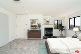 This sleek 3 bedroom + den/office contemporary home sits high above the street and affords city views from a very private setting. An open floor plan on the public level includes a large living room with fireplace and dark maple floors, an office/den, dining area, and very sleek, cooks kitchen featuring high end Thermador stainless-steel appliances, and caesarstone counters. The second floor bedroom level has expansive views to the west and opens to a large, sunny, landscaped terrace with spa. Master suite includes a glamorous bath, big, walk-in cedar lined closet, a fireplace, and views. Minutes to Lake Hollywood, the Hollywood Bowl, restaurants, shops, and the buzz of Hollywood. New carpet and paint. MLS# 25604849