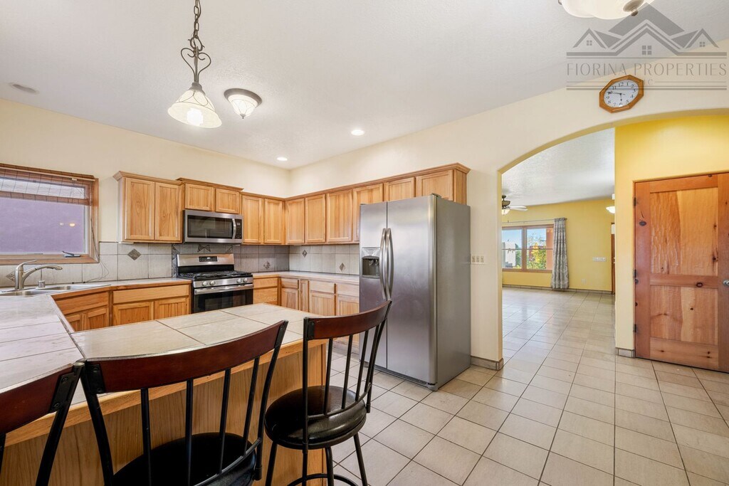 Serene, two-story, pueblo-style home in Tierra Contenta. The spacious floor plan offers three bedrooms, three bathrooms, and two terraces with beautiful views and plenty of room for relaxation or entertaining. Thoughtfully designed and boasting with character, this home includes a mix of tile and wood floors, radiant in-floor heating, and a gas fireplace. Also features ceiling fans, a portable AC unit (no additional cooling), an attached one-car garage plus driveway parking, and a coyote-fence enclosed backyard for added privacy. Convenient access to the 599 Relief Route, Santa Fe Airport, bike trails and Swan Park. 12-month lease term is preferred. Utilities are not included. Security deposit is equal to one month's rent. Pets are not allowed. Smoking of any kind is not allowed. No virtual tours. Property must be viewed in person prior to applying. Applications received prior to viewing the property will not be considered or processed. A $75 application fee and a minimum credit score of 620 is required. Please email Fiorina Properties to schedule a showing and include your phone number and email address. Brokerage: Fiorina Properties LLC Qualifying Broker: Riesha Fiorina