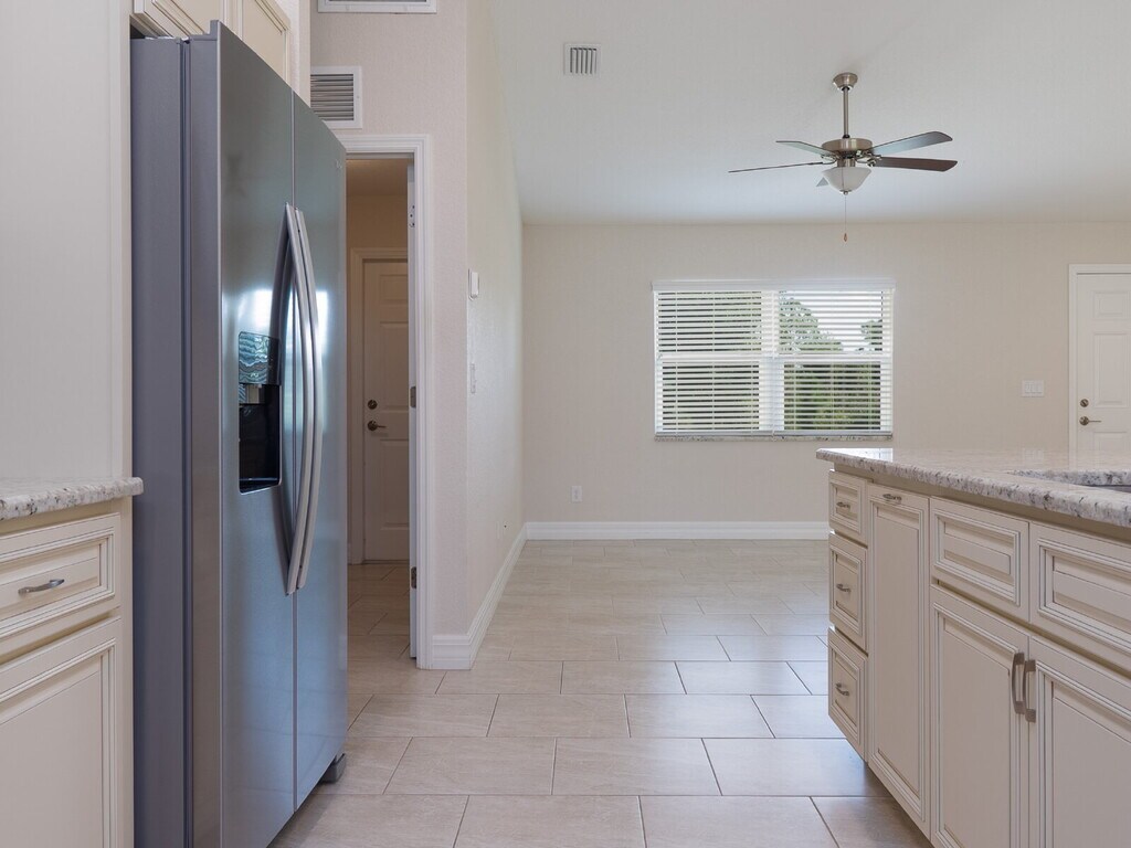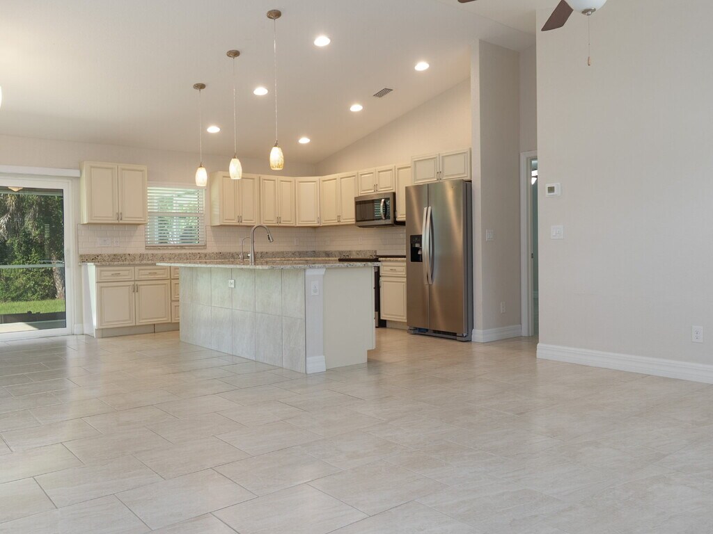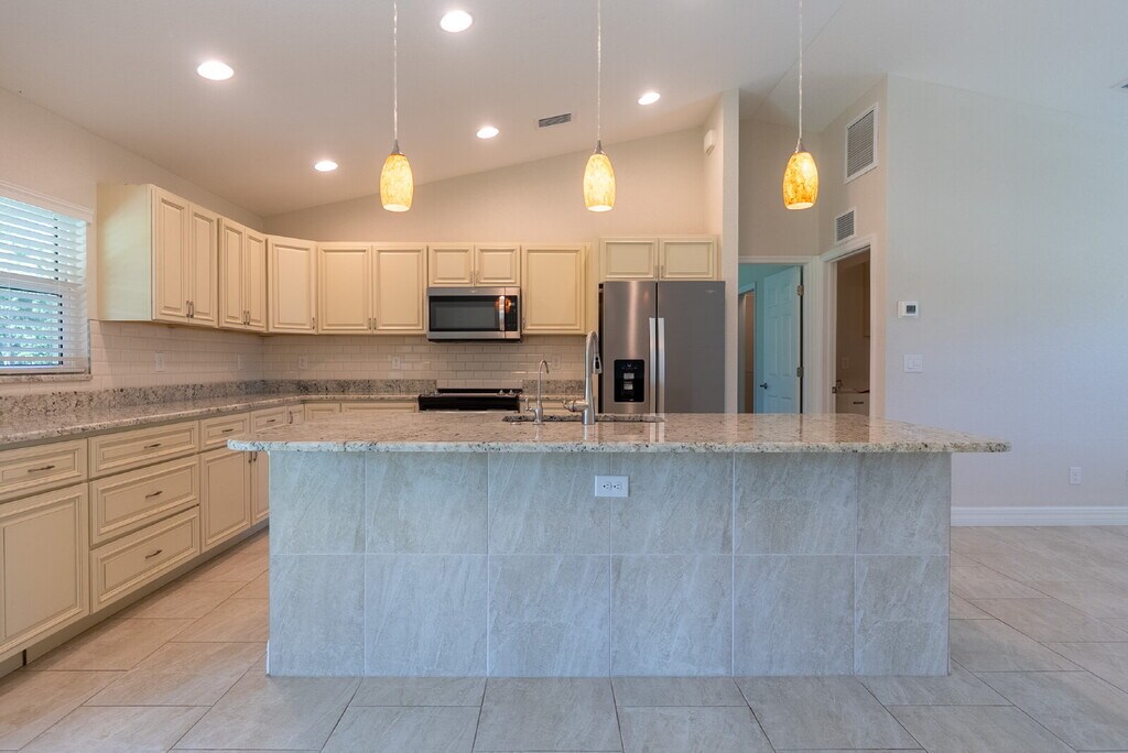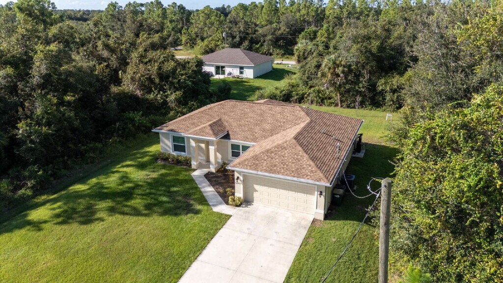 Welcome to this immaculate 3-bedroom, 2-bathroom home in North Port, built in 2022 and designed with modern living in mind. Offering 1,437 square feet of well-planned space on a generous quarter-acre lot, this residence combines style, comfort, and durability. The open, split floor plan features vaulted ceilings and beautiful porcelain tile flooring throughout, creating a bright and inviting atmosphere that is both elegant and easy to maintain. The gourmet kitchen is the heart of the home, complete with solid wood cabinetry, granite countertops (including window sills), and a full suite of stainless steel appliances. The thoughtful design continues with impact-resistant, insulated low-E windows, architectural shingle roofing, and a three-zone sprinkler system, all contributing to energy efficiency, low maintenance, and peace of mind. The screened lanai provides the perfect space to enjoy Florida’s indoor-outdoor lifestyle, while the 2-car garage, irrigation system, rain gutters, and walk-in closets add everyday convenience. Located in a desirable area of North Port, this home is close to shopping, dining, parks, and medical facilities, making it an excellent choice for families, retirees, or investors. With a blend of modern finishes, practical upgrades, and a move-in-ready condition, this property offers exceptional value and an ideal Florida lifestyle.