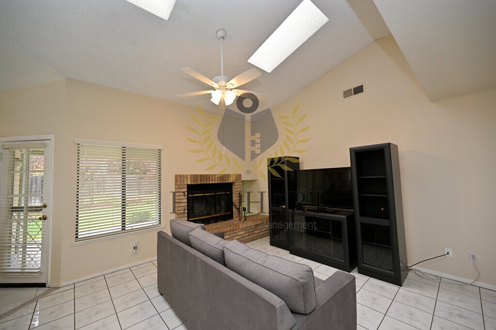 Light, open, and comfortable from the moment you walk in, this single-level 3 bedroom, 2 bath home offers an easy, functional layout that feels welcoming and livable. Vaulted ceilings and natural light give the main living space an airy feel, while the fireplace adds just the right touch of warmth for everyday living. The kitchen opens seamlessly to the dining area and living room, creating a space that works just as well for quiet nights in as it does for hosting. All three bedrooms are nicely sized, including a primary suite with direct bathroom access. Tile flooring throughout the main areas keeps the home bright and low-maintenance, with carpet in the bedrooms for added comfort. Out back, the private yard offers mature landscaping and a covered patio, providing a peaceful outdoor space to enjoy year-round. A refrigerator, washer, and dryer are included.